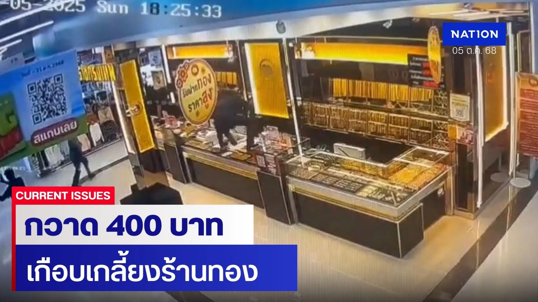 5 ตุลาคม 2568 เวลา 18.30 น. พ.ต.อ.เจษฎาวิทย์ อินทร์ประพันธ์ ผกก.สภ.สุไหงโก-ลก จ.นราธิวาส รับแจ้งเหตุคนร้าย จำนวน 8 คน พร้อมอาวุธปืนครบมือ บุกปล้นร้านทองแห่งหนึ่ง ในห้างดัง สาขาสุไหงโก-ลก โดยคนร้ายได้ใช้อาวุธปืนจี้ รปภ. พร้อมตรวจยึดวิทยุสื่อสาร ก่อนกวาดทองรูปพรรณที่ตั้งไว้ในตู้โชว์ภายในร้านไปเกือบหมดทั้งร้าน ซึ่งมีประมาณเกือบ 400 บาท