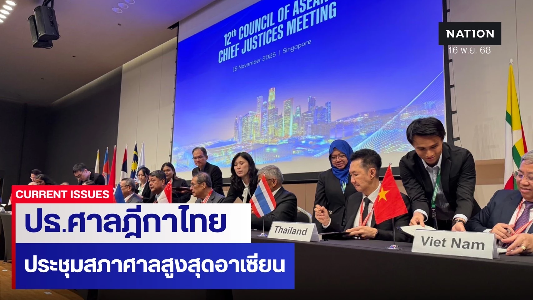 นอกจากนี้ เมื่อวันที่ 14 พ.ย. 2568 นายอดิศักดิ์ ตันติวงศ์ ประธานศาลฎีกา ในฐานะประธานคณะกรรมการแห่งชาติสมาคมกฎหมายอาเซียนประจำประเทศไทย นายธีรทัย เจริญวงศ์ เลขาธิการสำนักงานศาลยุติธรรม ในฐานะกรรมการ และเลขาธิการคณะกรรมการแห่งชาติฯ พร้อมด้วยนางมัณทรี อุชชิน รองประธานศาลฎีกา ช่วยทำงานชั่วคราวในตำแหน่งประธานศาลอุทธรณ์ นายวรวุฒิ ทวาทศิน ประธานศาลอุทธรณ์ภาค 8 ช่วยทำงานชั่วคราวในตำแหน่งประธานแผนกคดีเลือกตั้งในศาลฎีกา พร้อมด้วยผู้แทนจากศาลยุติธรรม ศาลปกครอง เนติบัณฑิตยสภาคณาจารย์คณะนิติศาสตร์จากมหาวิทยาลัย และผู้แทนภาคเอกชน เข้าร่วมการประชุมคณะกรรมการบริหารและคณะกรรมาธิการถาวรของสมาคมกฎหมายอาเซียน ครั้งที่ 46 ซึ่งจัดโดยสมาคมกฎหมายอาเซียนประจำสาธารณรัฐสิงคโปร์ ณ ศาลฎีกาสิงคโปร์