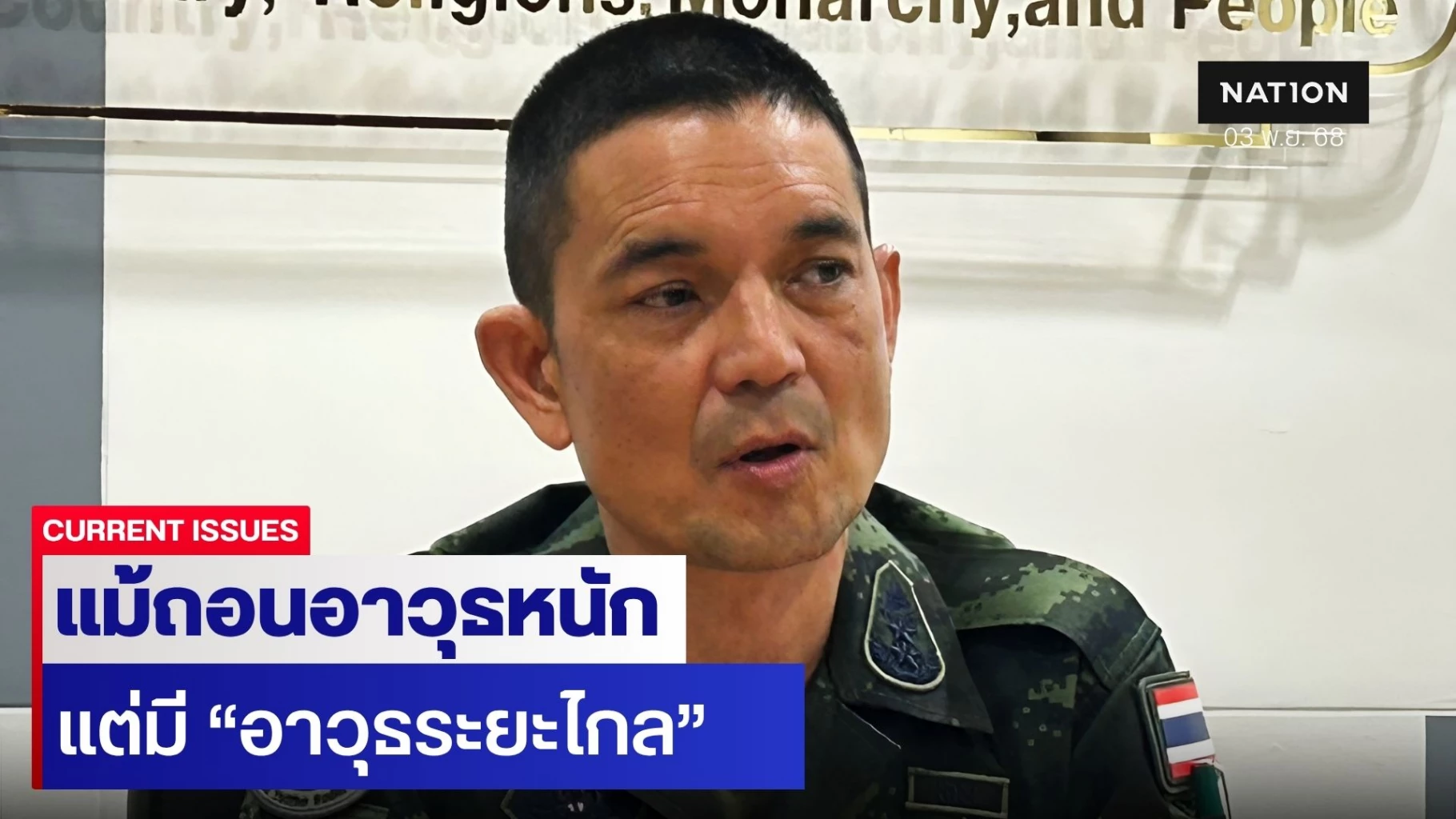 3 พฤศจิกายน 2568 พลตรี วินธัย สุวารี โฆษกกองทัพบก กล่าวถึงข้อกังวลเรื่องถอนอาวุธหนัก จากพื้นที่ชายแดนไทย-กัมพูชา หากกัมพูชา ไม่ปฏิบัติตามข้อตกลงร่วมกัน ว่า แผนการถอนอาวุธครั้งนี้ดำเนินการเฉพาะอาวุธหนัก 3 กลุ่ม ที่อาจส่งผลต่อประชาชนที่ไม่ใช่เป้าหมายทางทหาร แต่มีส่วนอื่นๆ ที่ยังคงอยู่