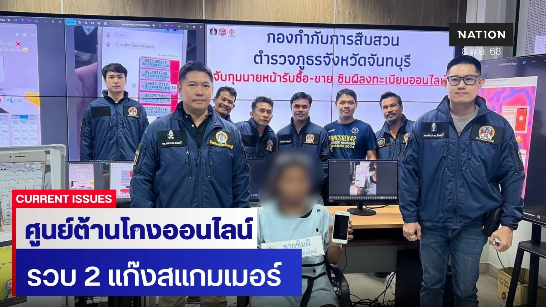 8 พฤศจิกายน 2568 ศูนย์ต่อต้านการฉ้อโกงออนไลน์ (ACSC) ภายใต้การอำนวยการของ พล.ต.อ.ธนา ชูวงศ์ รอง ผบ.ตร./ผอ.ศปอส.ตร. , พล.ต.ท.จิรภพ ภูริเดช ผู้ช่วย ผบ.ตร./รอง ผอ.ศปอศ.ตร. ผนึกกำลัง กองบัญชาการตำรวจภูธรภาค 2(บช.ภ.2) ภายใต้การอำนวยการของ พล.ต.ท.ฉัตรชัย สุรเชษฐพงษ์ ผบช.ภ.2 สั่งการให้ เจ้าหน้าที่ตำรวจศูนย์ต่อต้านการฉ้อโกงออนไลน์ และเจ้าหน้าที่ตำรวจภูธรภาค 2 ร่วมกันบูรณาการสืบสวนจับกุมกลุ่มสแกมเมอร์ทุกรูปแบบที่ได้กระทำความผิดหลอกลวงผู้เสียหายผ่านทางออนไลน์ โดยสามารถจับกุม 2 เครือข่ายสแกมเมอร์ ดังนี้
