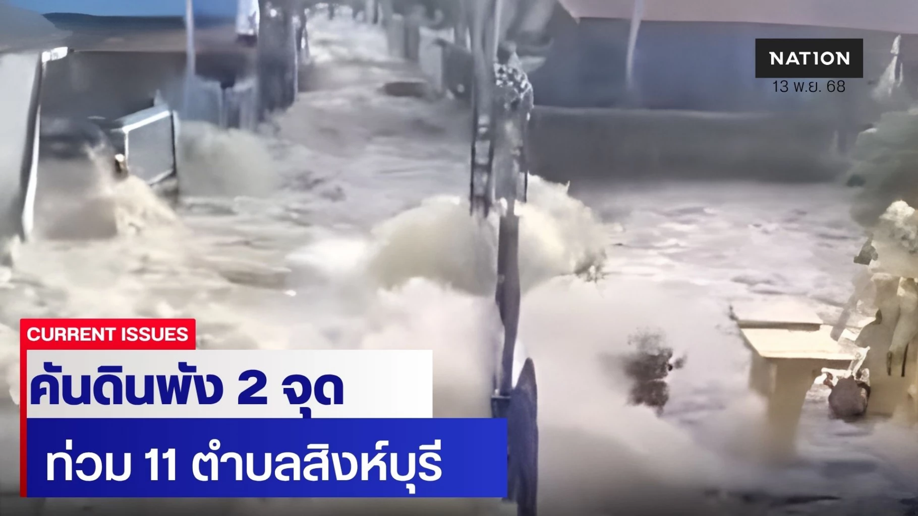13 พฤศจิกายน 2568 อัปเดตสถานการณ์น้ำท่วม จ.สิงห์บุรี จากเหตุคันดินกั้นน้ำแตก บริเวณวัดปราสาท หมู่ 4 ต.อินทร์บุรี อ.อินทร์บุรี จ.สิงห์บุรี เมื่อเย็นวันที่ 12 พฤศจิกายน 2568 ส่งผลให้มวลน้ำจำนวนมากไหลทะลักเข้าท่วมบ้านเรือน