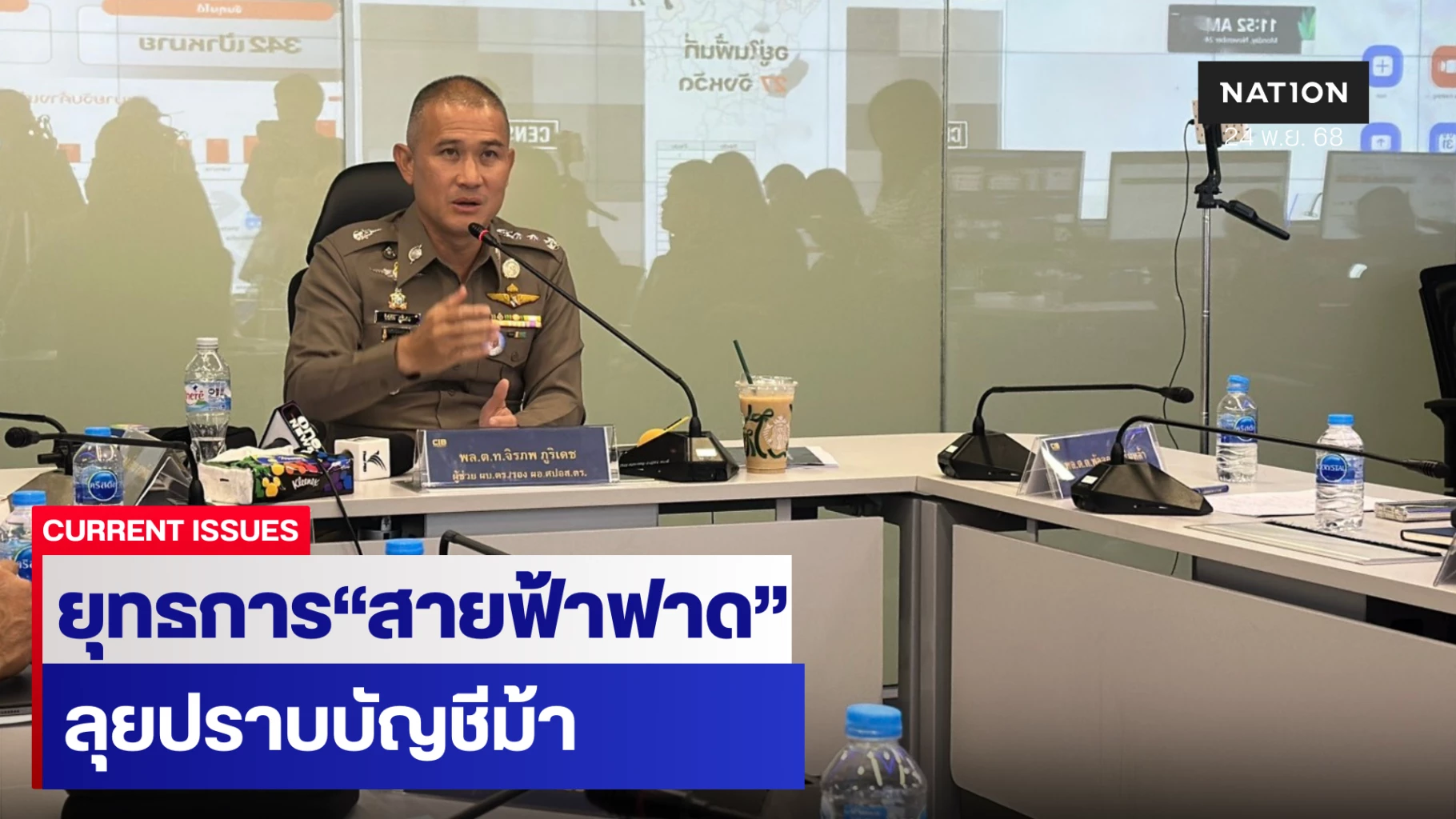 24 พฤศจิกายน 2568 ที่ กองบังคับการปราบปราม (บก.ป.) พล.ต.ท.จิรภพ ภูริเดช ผู้ช่วย ผบ.ตร. ในฐานะรองผู้อำนวยการศูนย์ปราบปรามอาชญากรรมทางเทคโนโลยีสารสนเทศ สำนักงานตำรวจแห่งชาติ (รอง ผอ.ศปอส.ตร.) เป็นประธานแถลงผลปฏิบัติการระดมกวาดล้างบัญชีม้าและอาชญากรรมทางเทคโนโลยีทั่วประเทศ ภายใต้ยุทธการสายฟ้าฟาด ปราบบัญชีม้าสั่นเครือทั่วประเทศ” ระหว่างวันที่ 18 - 26 พฤศจิกายน 2568 ตามคำสั่งของ พล.ต.อ.ธนา ชูวงศ์ รอง ผบ.ตร. และ ผอ.ศปอส.ตร.