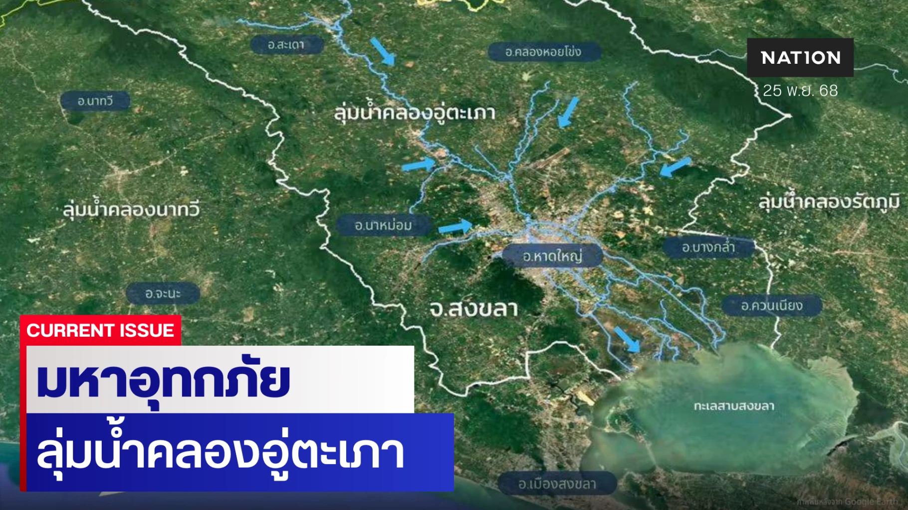 เมื่อรวมเข้ากับปริมาณฝนที่ตกหนักกว่าปกติและตกต่อเนื่องหลายวัน ทำให้ปริมาณน้ำที่ไหลลงสู่คลองอู่ตะเภามากเกินความสามารถของทั้งดิน ระบบลำน้ำ และระบบระบายน้ำในเขตเมืองในการรองรับ พื้นที่ราบตอนล่างซึ่งเป็นโซนรับน้ำสุดท้ายของลุ่มน้ำถูกน้ำท่วมซ้ำซากอีกครั้ง เหตุการณ์ครั้งนี้จึงเป็นผลลัพธ์ของทั้งสภาพอากาศสุดขั้วและข้อจำกัดด้านภูมิประเทศที่เสี่ยงต่อการเกิดน้ำท่วมโดยโครงสร้าง