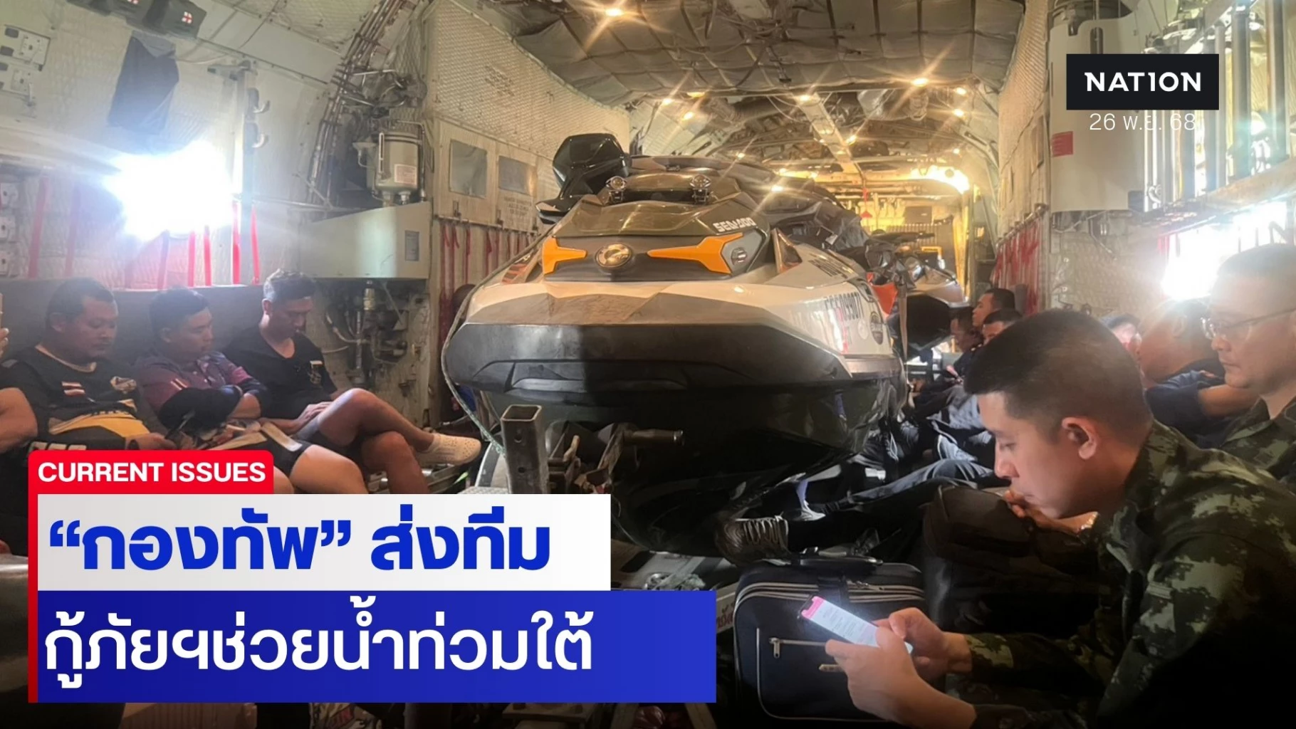 กองทัพไทย ขนทีม "กู้ภัยแผ่นดินไหวเมียนมา" ลุยช่วย "น้ำท่วมหาดใหญ่" ขณะที่ ทอ. ลำเลียงกำลังพล-เรือ-ทีมแพทย์-สิ่งของ ลงกองบิน 56