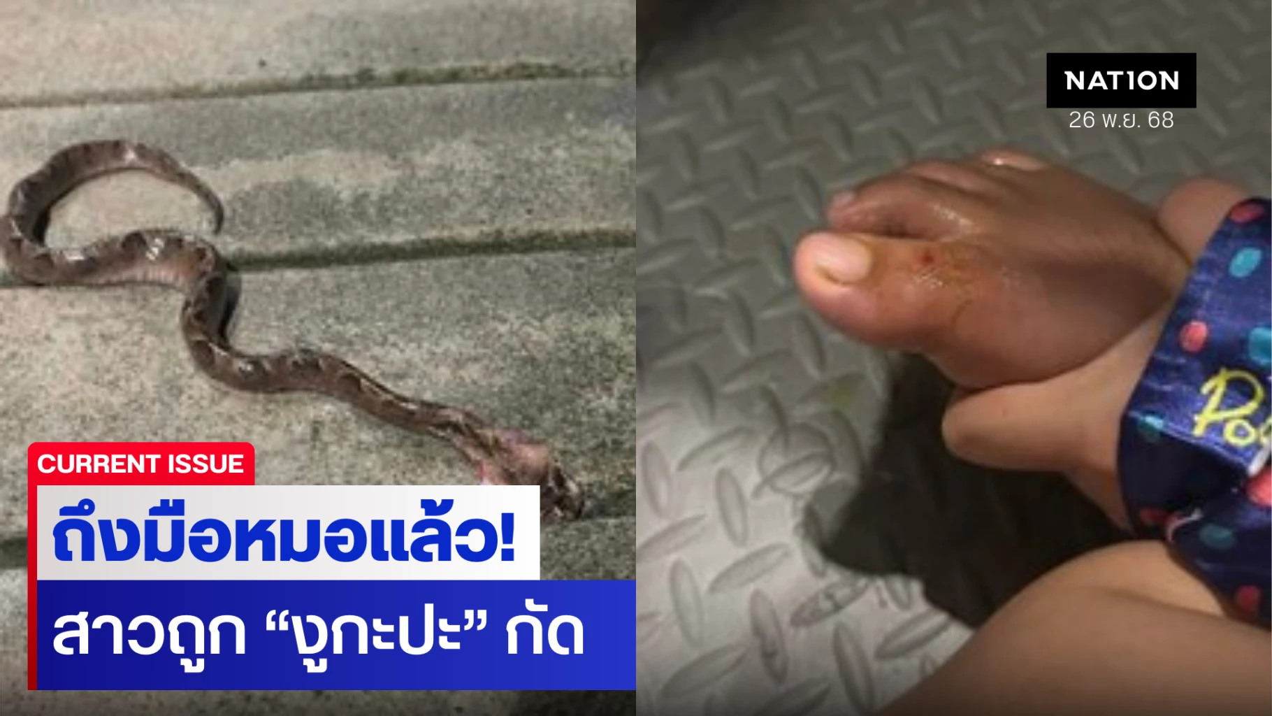 26 พฤศจิกายน 2568 ขอความช่วยเหลือด่วน หญิงติดในบ้าน ถูกงูกะปะกัด พิกัด ตรงข้าม อบต.แม่ทอม ซอยโคกโตนด อ.บางกล่ำ จ.สงขลา บ้านเลขที่ 2 หมู่4 ซอยโคกตะโหนด 080-529-1699 (การ์ตูนคนเจ็บ)
