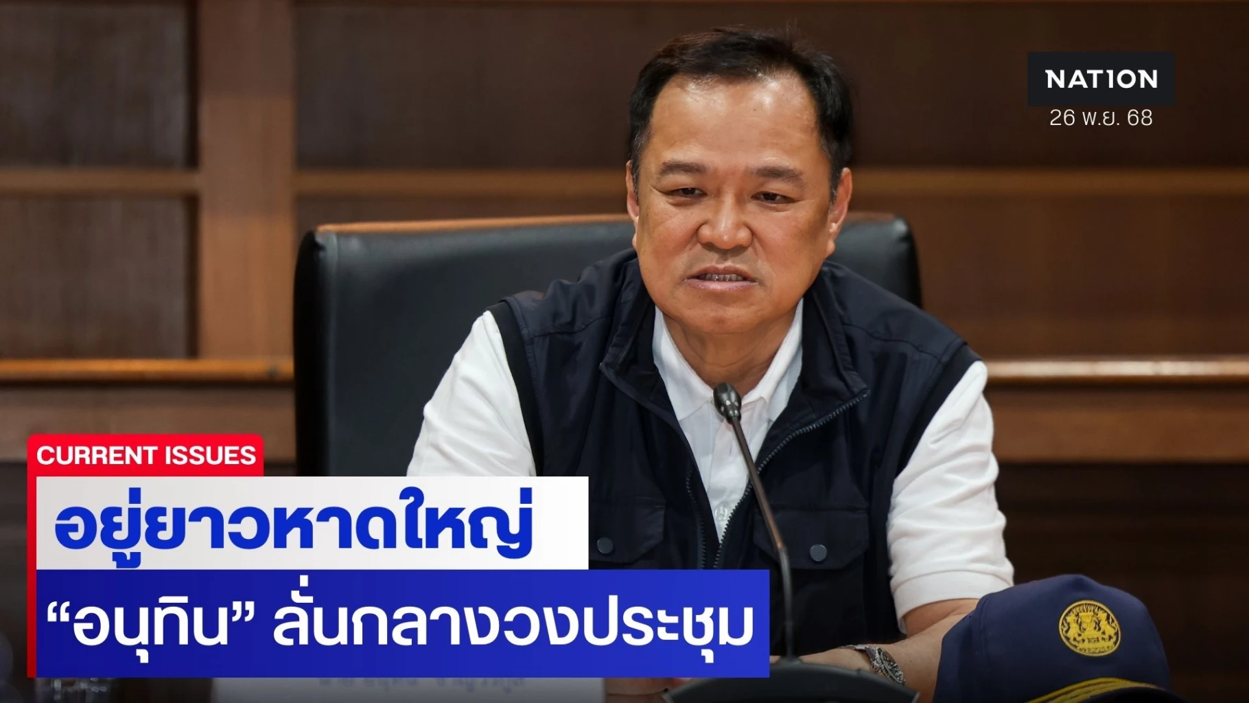 26 พฤศจิกายน 2568 นายอนุทิน ชาญวีรกูล นายกรัฐมนตรี และ รมว.มหาดไทย เป็นประธานการประชุมผ่านระบบออนไลน์ จากกองบิน 56 จ.สงขลา ไปที่ห้องประชุมเสนาณรงค์ มณฑลทหารบกที่ 42 ค่ายเสนาณรงค์ ซึ่งมี นายพิพัฒน์ รัชกิจประการ รองนายกรัฐมนตรี และรมว.คมนาคม , พล.ท.นรธิป โพยนอก แม่ทัพภาคที่ 4 ร่วมประชุมศูนย์ปฏิบัติการแก้ไขสถานการณ์ฉุกเฉินอุทกภัย(ศป.กฉ.) ครั้งที่ 1 / 2568 โดยมีทุกภาคส่วนที่เกี่ยวข้องเข้าร่วม เพื่อติดตามสถานการณ์น้ำท่วมหาดใหญ่และการดำเนินการช่วยเหลือประชาชนในพื้นที่