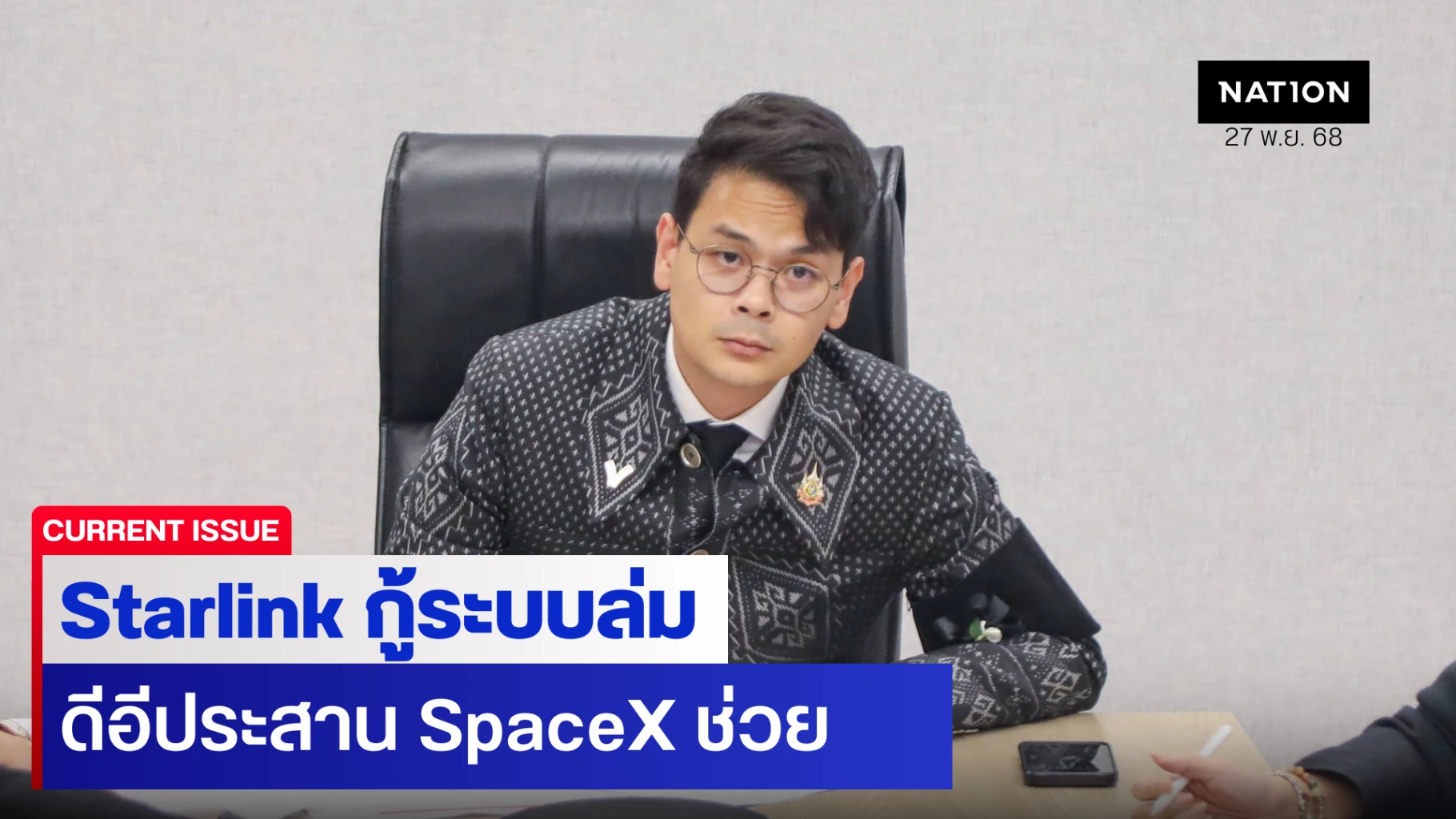 ทั้งนี้ จากสถานการณ์อุทกภัยในพื้นที่ อ.หาดใหญ่ จ.สงขลา ทำให้ระบบสื่อสารโทรคมนาคมไม่สามารถใช้งานได้ในพื้นที่ส่วนใหญ่ที่ประสบภัย ดังนั้นจึงมีความจำเป็นจะต้องวางระบบการสื่อสารผ่านดาวเทียมขึ้นใหม่ เพื่อใช้ในภาวะวิกฤติอำนวยความสะดวกให้กับหน่วยงานและเจ้าหน้าที่กู้ภัยในพื้นที่ ในการให้ความช่วยเหลืออพยพประชาชน โดยตนได้ดำเนินการประสานงานกับ บริษัท SpaceX เพื่อขอความร่วมมือวางระบบสื่อสารอินเทอร์เน็ตผ่านดาวเทียมความเร็วสูง (satellite internet broadband) โดยใช้อุปกรณ์ดาวเทียม Starlink ในการเชื่อมต่อระบบ