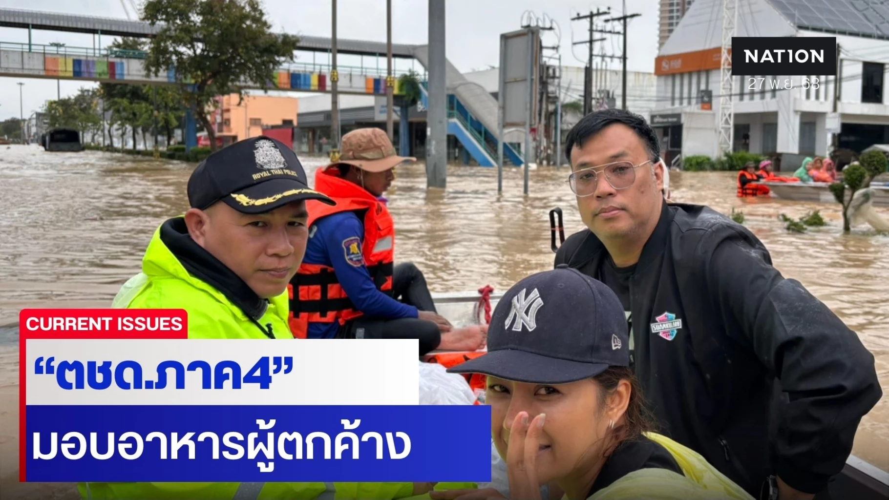 "ตชด.ภาค 4" ลงพื้นที่หาดใหญ่ มอบอาหาร–น้ำดื่มผู้ติดค้างพื้นที่น้ำท่วมหนัก