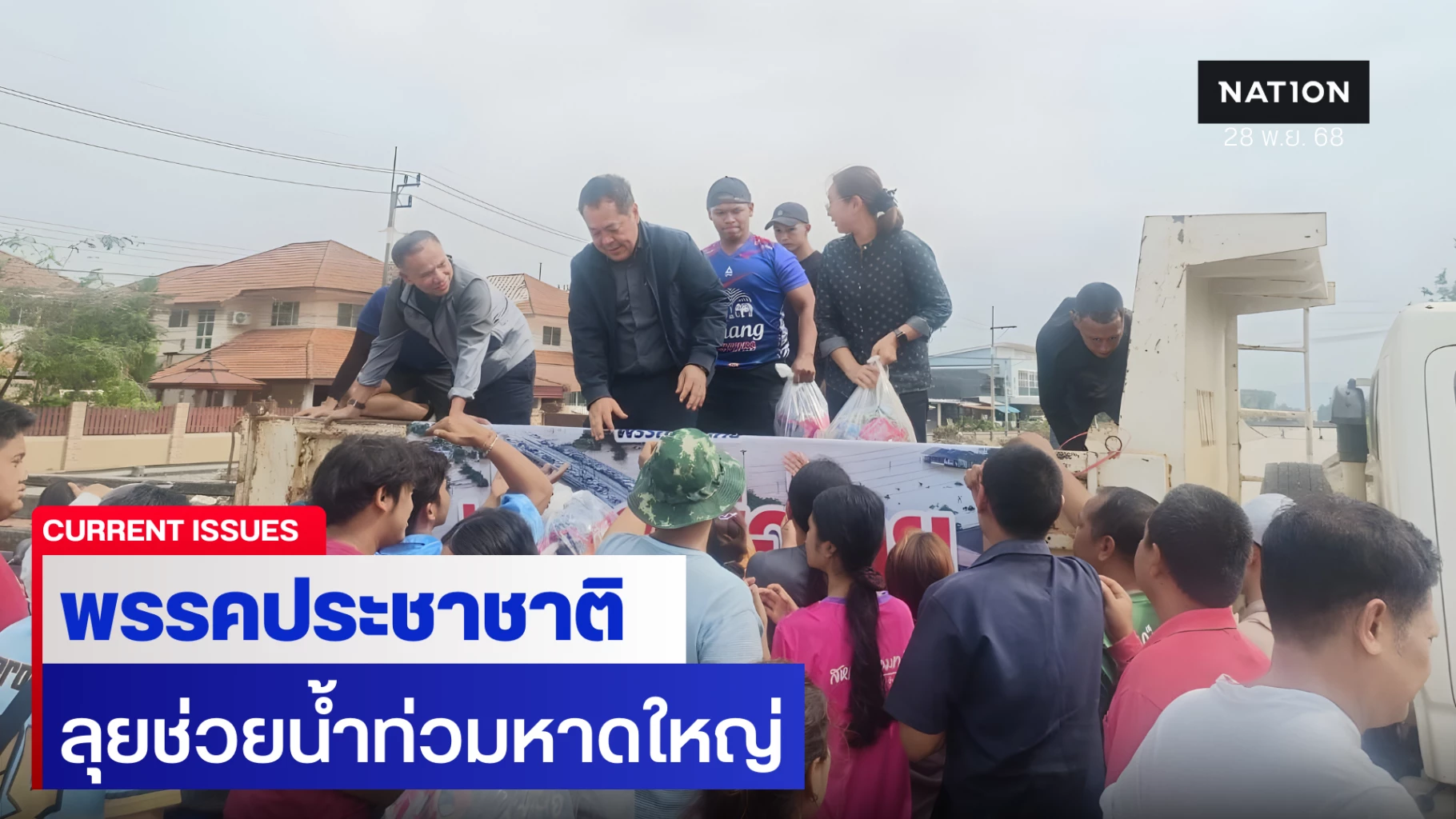 28 พฤศจิกายน 2568 พ.ต.อ.ทวี สอดส่อง หัวหน้าพรรคประชาชาติ พร้อมด้วย นายซูการ์โน มะทา เลขาธิการพรรคประชาชาติ, สส.พรรคประชาชาติ จาก จ.ยะลา ปัตตานี และนราธิวาส รวมถึงทีมงาน ได้ลงพื้นที่เยี่ยมให้กำลังใจ และบรรเทาความเดือดร้อน แก่ผู้ประสบภัยน้ำท่วมใน อ.หาดใหญ่ จ.สงขลา