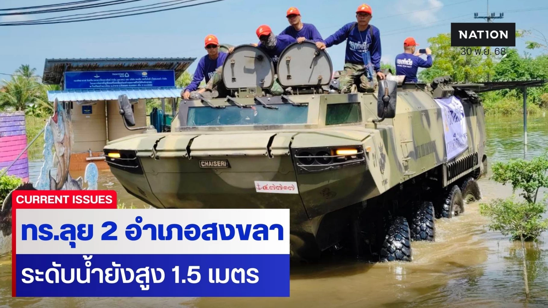 อัปเดตสถานการณ์น้ำท่วมสงขลา 2 อำเภอยังอ่วม! ระดับน้ำสูง 1.5 เมตร กองทัพเรือต้องนำรถเทินน้ำสะเทินบก พร้อมกำลังนาวิกโยธิน-ชุดแพทย์ฉุกฉิน เข้าช่วยเหลือ