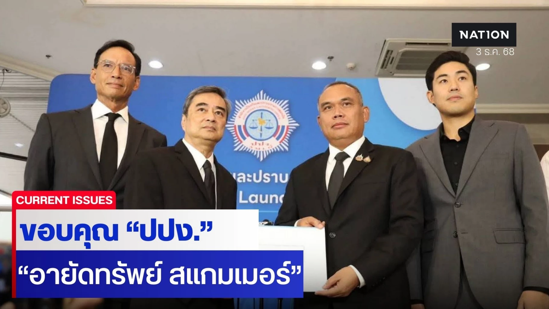 3 ธันวาคม 2568 นายพงศกร ขวัญเมือง โฆษกพรรคประชาธิปัตย์ ได้โพสต์ข้อความ ขอบคุณสำนักงานป้องกันและปราบปรามการฟอกเงิน (ปปง.) อย่างเป็นทางการ หลังจากคณะกรรมการธุรกรรม ปปง. มีมติสำคัญเมื่อวันที่ 2 ธันวาคม 2568 ให้ยึดและอายัดทรัพย์สินในคดีอาชญากรรมทางเทคโนโลยี 4 คดีใหญ่ ซึ่งมีมูลค่ารวมสูงถึง 10,165 ล้านบาท