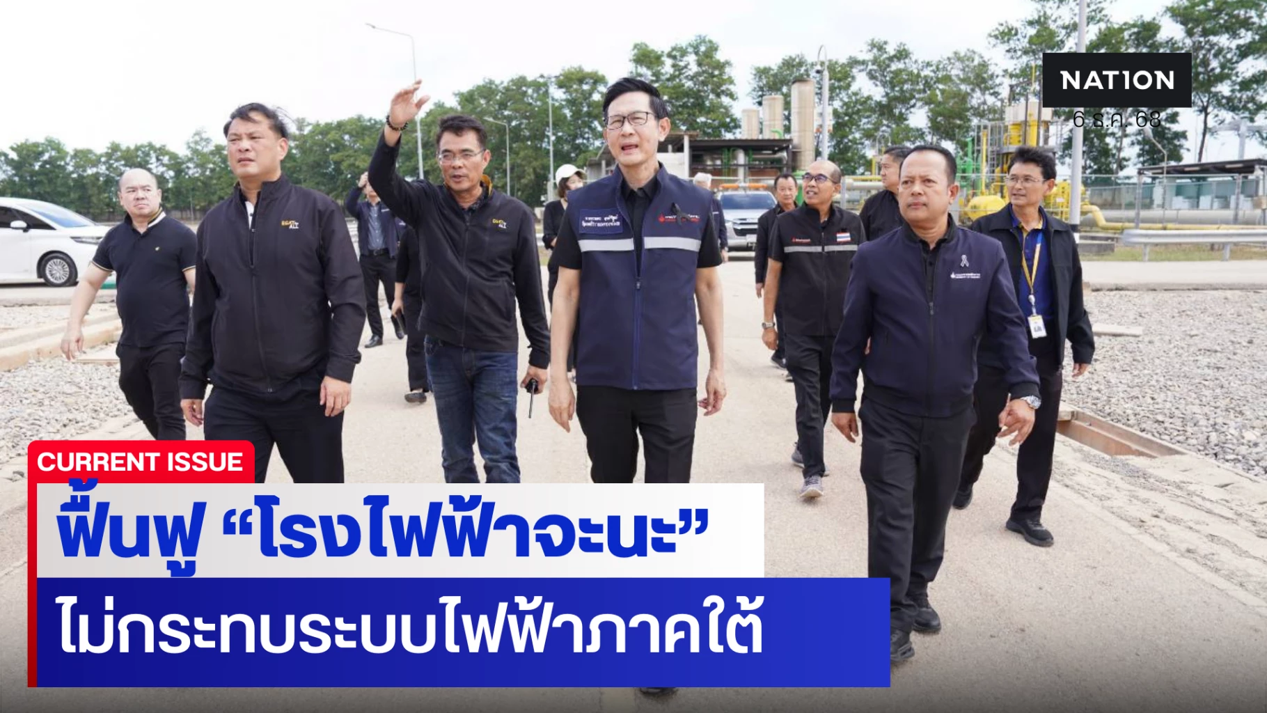 6 ธันวาคม 2568 นายอรรถพล ฤกษ์พิบูลย์ รัฐมนตรีว่าการกระทรวงพลังงาน พร้อมด้วย นายวีรพัฒน์ เกียรติเฟื่องฟู รองปลัดกระทรวงพลังงาน และนายนรินทร์ เผ่าวณิช ผู้ว่าการการไฟฟ้าฝ่ายผลิตแห่งประเทศไทย (กฟผ.) ตรวจการฟื้นฟูโรงไฟฟ้าจะนะหลังได้รับผลกระทบจากอุทกภัยเมื่อปลายเดือนพฤศจิกายนที่ผ่านมา โดยปัจจุบันได้มีการตรวจสอบความแข็งแรงของโครงสร้าง ตรวจจุดเก็บสารเคมีและถังเชื้อเพลิง รวมถึงได้ระดมสูบน้ำออกจากพื้นที่และเก็บกวาดตะกอนโคลนหมดแล้ว มีการทำความสะอาดอุปกรณ์และจัดการขยะอันตราย จึงได้สั่งการให้ประสานงานไปยังโรงไฟฟ้าบางปะกง จ.ฉะเชิงเทรา และโรงไฟฟ้าวังน้อย จ.พระนครศรีอยุธยา เพื่อเตรียมสำรองอะไหล่สำหรับการซ่อมแซมหากจำเป็น เพื่อให้สามารถกู้คืนระบบกลับมาใช้งานได้เร็วที่สุด