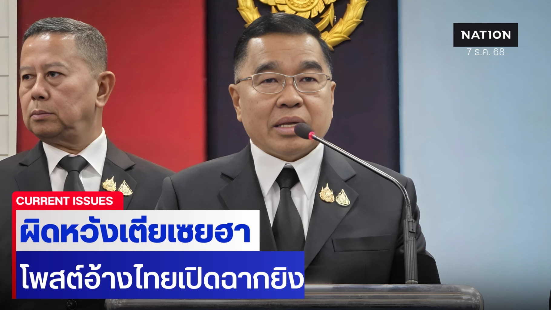 7 ธันวาคม 2568 พลเอก ณัฐพล นาคพาณิชย์ รัฐมนตรีว่าการกระทรวงกลาโหม กล่าวถึงสถานการณ์ไทย-กัมพูชา ที่เกิดขึ้นล่าสุด ซึ่งมีทหารไทยบาดเจ็บ 2 นาย ว่า สถานการณ์เป็นไปตามที่กองทัพภาคที่ 2 ชี้แจง โดยสาเหตุมาจากฝ่ายกัมพูชายั่วยุก่อน ปัจจุบันสถานการณ์สงบแล้ว แต่ที่ผ่านมากัมพูชาเคลื่อนไหวยั่วยุฝ่ายไทยมาตลอด ฝ่ายไทยก็ได้แจ้งเรื่องไปยังรัฐบาลกัมพูชา