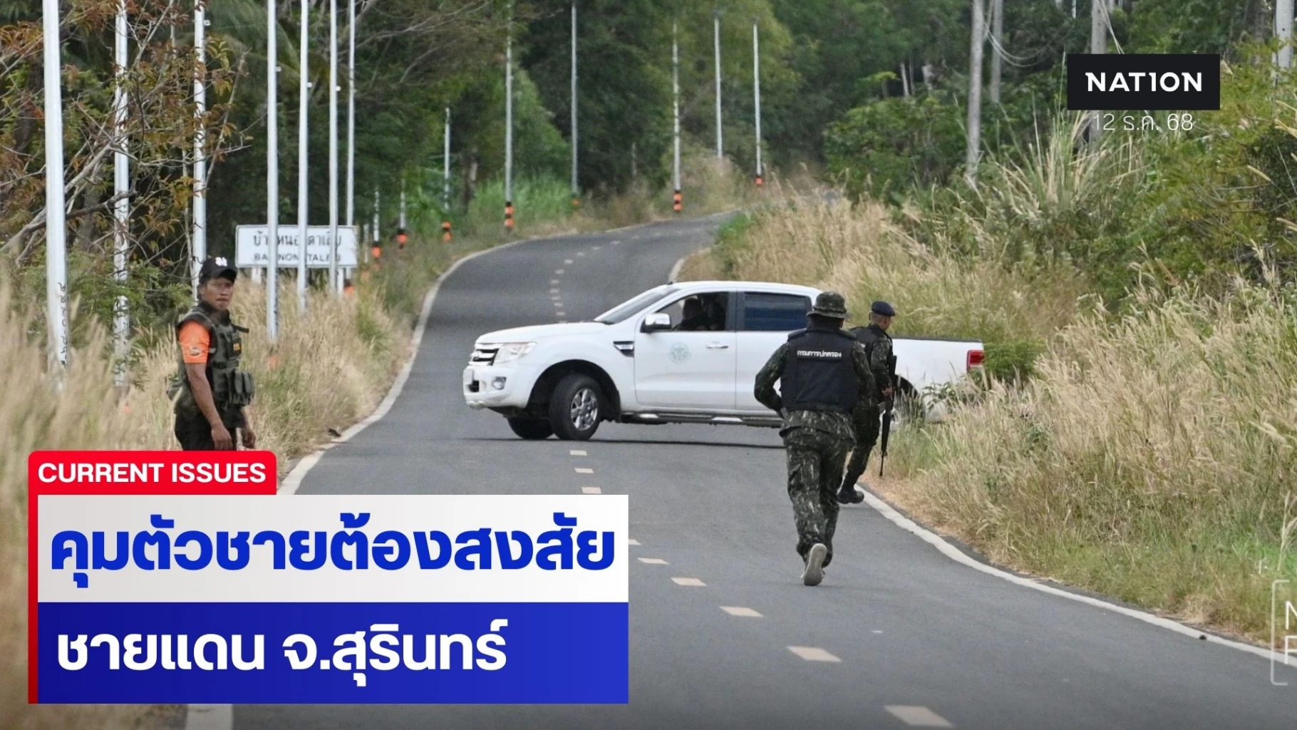 ผู้สื่อข่าวรายงานว่า พื้นที่ชายแดนพนมดงรัก จ.สุรินทร์ เกิดความวุ่นวายเมื่อเจ้าหน้าที่ฝ่ายปกครองต้องเร่งเข้าควบคุมตัวชายต้องสงสัยคนหนึ่งกลางไร่อ้อย หลังพบพฤติกรรมน่าสงสัยในช่วงที่กำลังมีมาตรการเฝ้าระวังเข้ม เนื่องจากมีกระแสข่าวสายลับกัมพูชาลอบส่งพิกัดความเคลื่อนไหวของทหารไทย