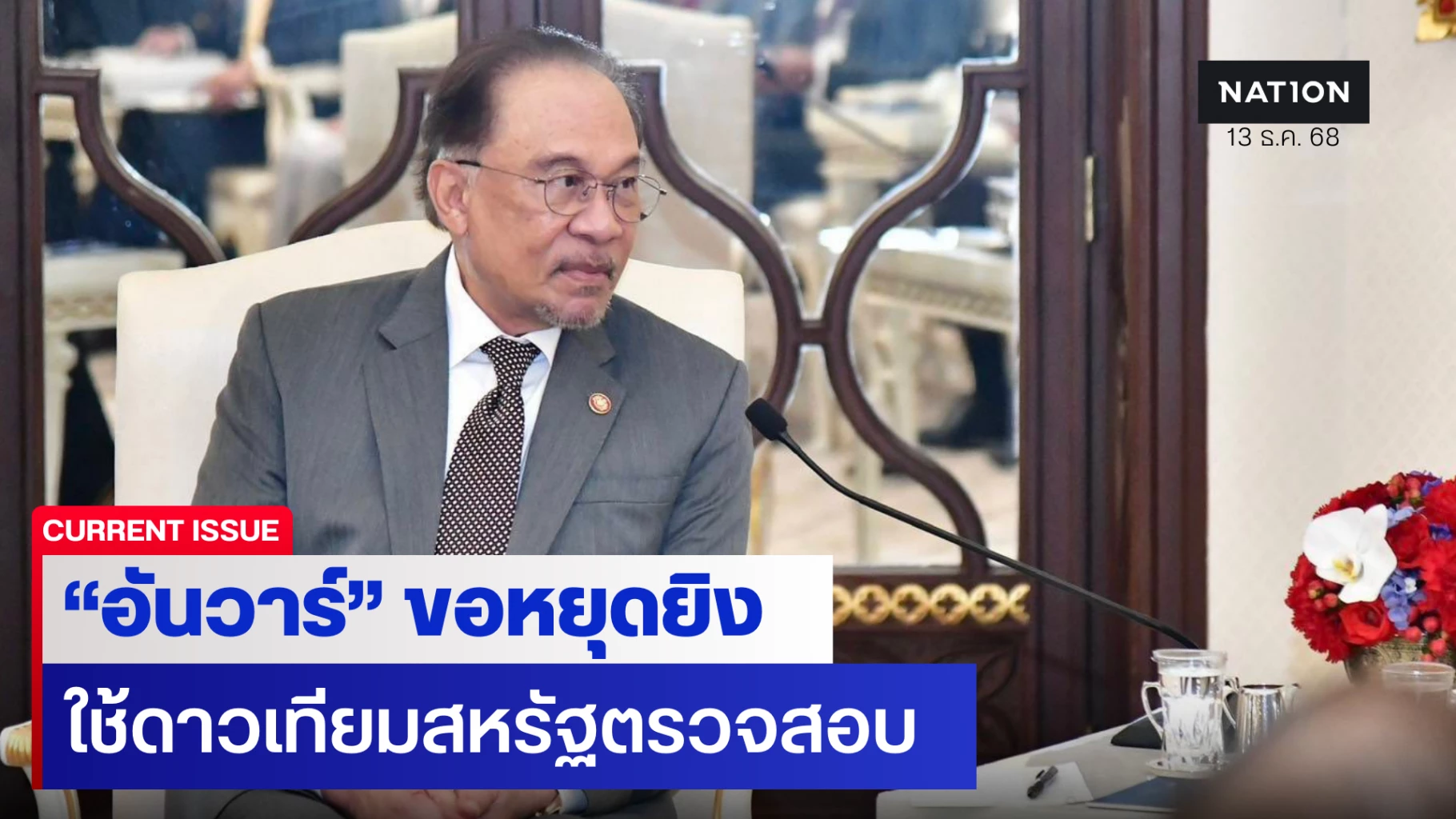 13 ธันวาคม 2568 เวลา 16.00 น. นายกรัฐมนตรีมาเลเซีย อันวาร์ อิบราฮิม ในฐานะประธานอาเซียน เรียกร้องให้ประเทศไทยและกัมพูชา ยุติการสู้รบภายในเวลา 22.00 น. โดยระบุว่า หลังจากคุยโทรศัพท์กับ ประธานาธิบดีโดนัลด์ ทรัมป์ ของสหรัฐฯ เขาก็ได้โทรศัพท์ไปหานายกรัฐมนตรี “อนุทิน” ของไทย และนายกรัฐมนตรี “ฮุน มาเนต” ของกัมพูชา และได้เน้นย้ำว่า มาเลเซียมีความวิตกกังวลต่อการสู้รบกันของไทย-กัมพูชา มาเลเซียขอให้ทั้งสองฝ่ายอดทนอย่างถึงที่สุด ยุติความเป็นปรปักษ์และงดเว้นปฏิบัติการทางทหารที่จะทำให้ข้อพิพาททวีความรุนแรงมากขึ้น โดยการหยุดยิงขอให้มีผลตั้งแต่เวลา 22.00 น.วันนี้