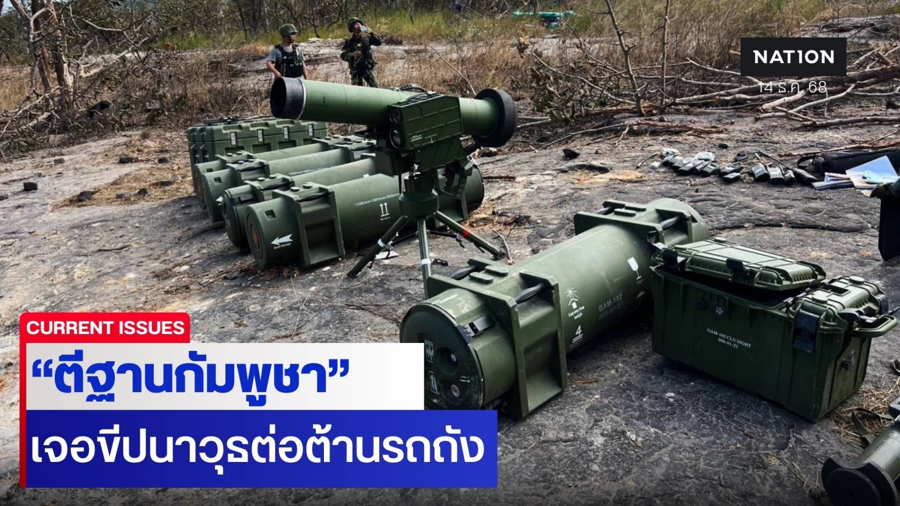 14 ธันวาคม 2568 รายงานข่าวจาก กองทัพบก ยืนยันว่า ทหารไทยสามารถยึดระบบขีปนาวุธต่อต้านรถถังนำวิถียุคที่ 5 รุ่น GAM-102LR สัญชาติจีน จากทหารกัมพูชา บนเนิน 500 ได้เป็นจำนวนมาก