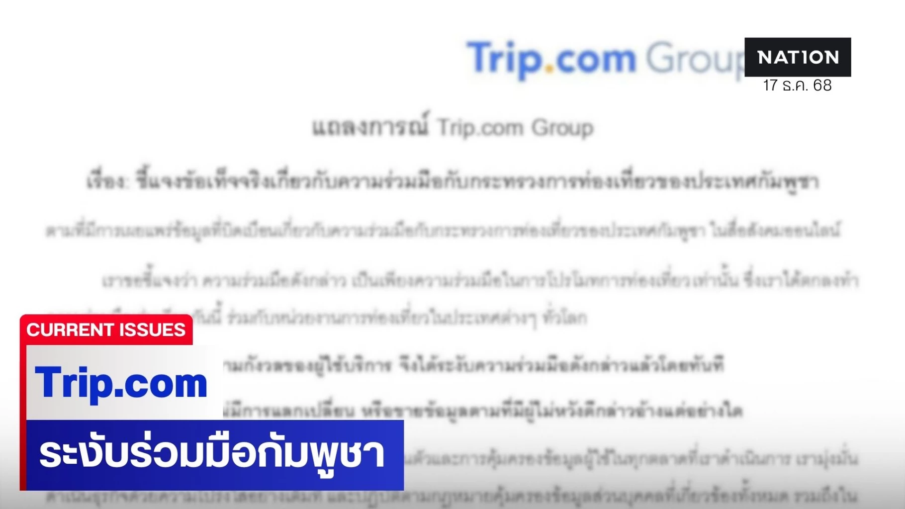 17 ธันวาคม 2568 ผู้สื่อข่าวรายงานว่า Trip.com Group ประเทศไทย หรือทริปดอทคอม ได้ออกแถลงการณ์ผ่านเฟซบุ๊ก Trip.com Thailand ชี้แจงข้อเท็จจริงตามรายงานข่าวที่ปรากฏเกี่ยวกับความร่วมมือกับกระทรวงการท่องเที่ยวของประเทศกัมพูชา ระบุว่า