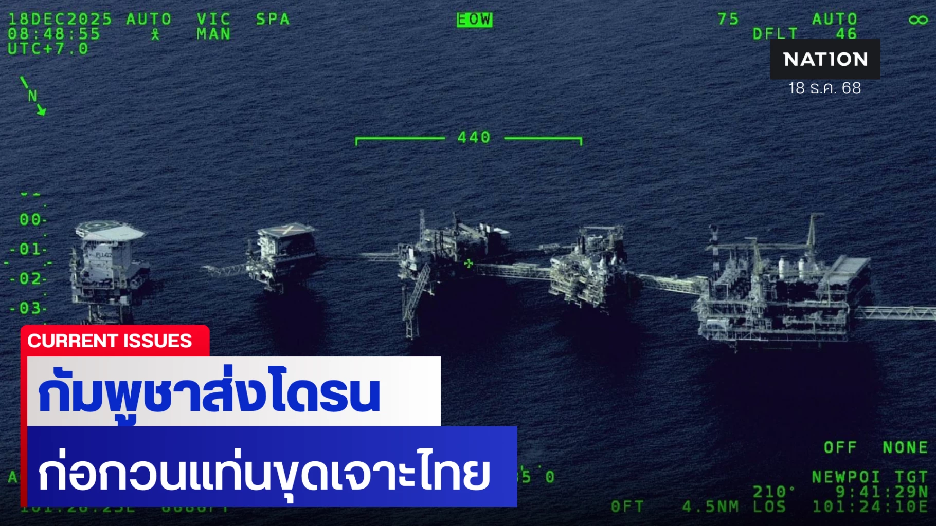 “กัมพูชา” เหิม ส่งโดรนก่อกวนแท่นขุดเจาะน้ำมันไทยกลางทะเล