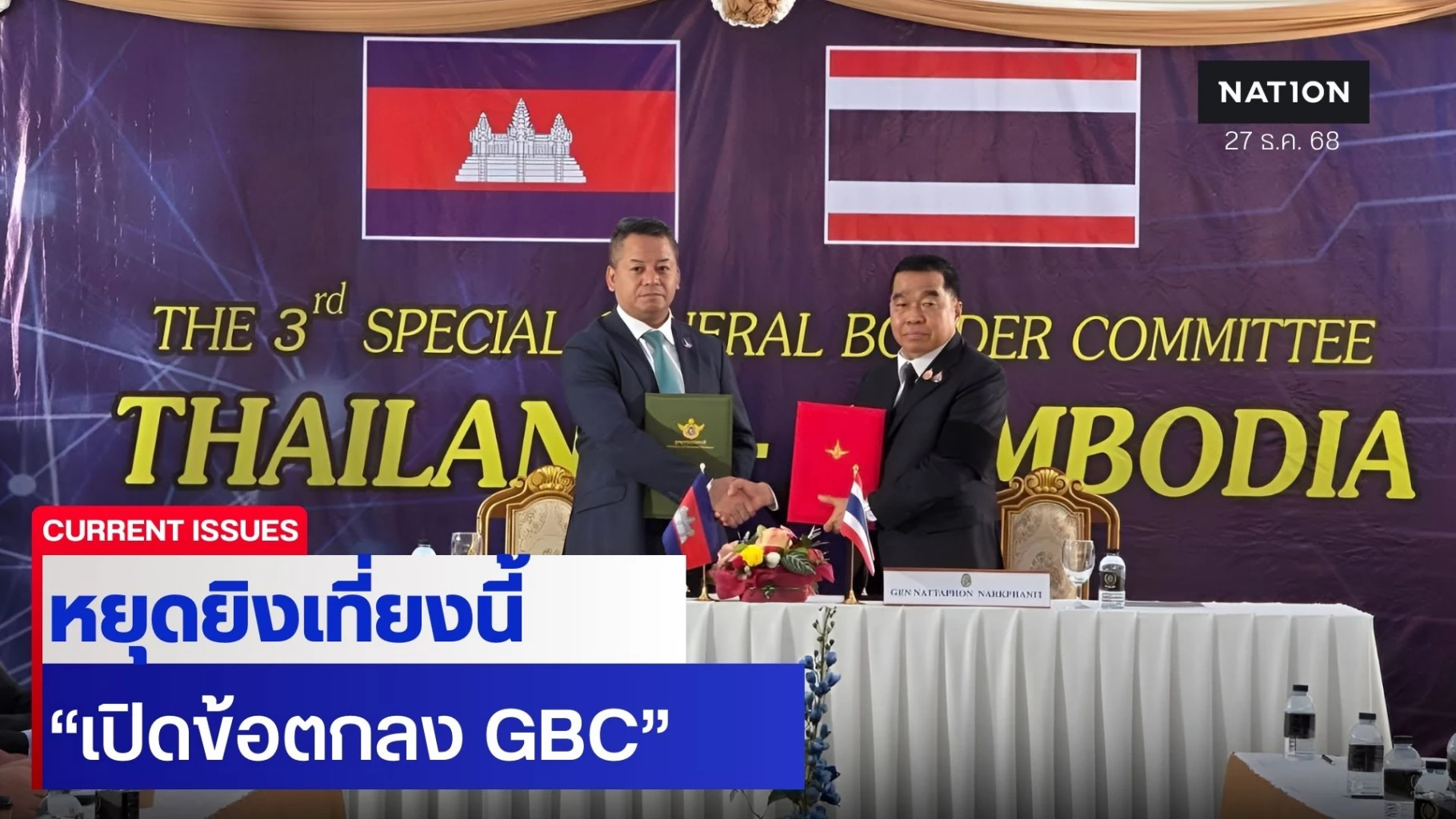27 ธันวาคม 2568 แถลงการณ์ร่วมการประชุมคณะกรรมการชายแดนทั่วไปพิเศษ (GBC) ครั้งที่ 3 ระหว่าง ราชอาณาจักรกัมพูชา และ ราชอาณาจักรไทย จังหวัดจันทบุรี