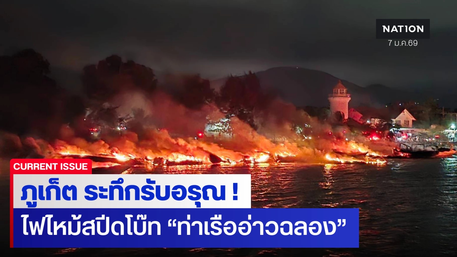 7 มกราคม 2569 เมื่อเวลาประมาณ 04.00 น. ของเช้าวันนี้ (7 ม.ค.2569) ตำรวจ สภ.ฉลอง และเจ้าหน้าที่กู้ภัย ได้รับแจ้งเหตุ เพลิงไหม้เรือสปีดโบ๊ทบริเวณท่าเทียบเรืออ่าวฉลอง ตำบลฉลอง อำเภอเมือง จังหวัดภูเก็ต โดยเพลิงได้ลุกลามอย่างรวดเร็ว เบื้องต้นมีเรือได้รับความเสียหายกว่า 10 ลำ