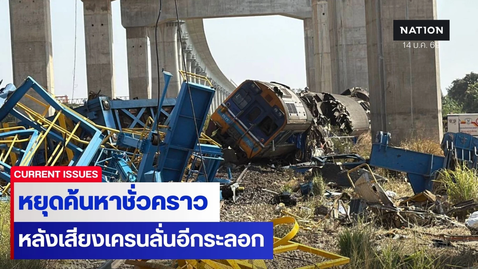 สั่งหยุดค้นหาร่างในรถไฟชั่วคราว หลังเสียงเครนลั่นอีกระลอก อัปเดตเคสดำ 22 ราย