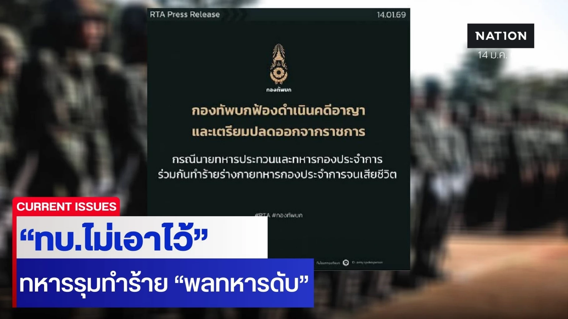 ไม่เอาไว้! "กองทัพบก" ดำเนินคดีอาญา-ปลดออกราชการ เหตุ "ทหารรุมทำร้ายพลทหารดับ" สร้างความเสื่อมเสียต่อกองทัพบก