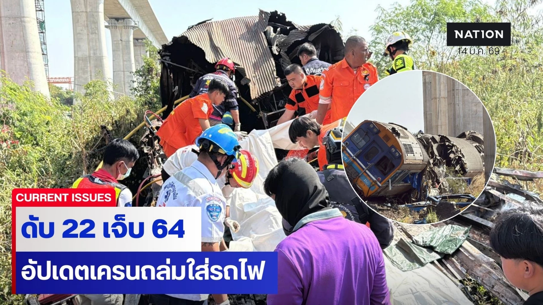 อัปเดตยอดผู้ประสบเหตุ เครนถล่มใส่รถไฟจนเกิดไฟไหม้ ดับ 22 เจ็บ 64