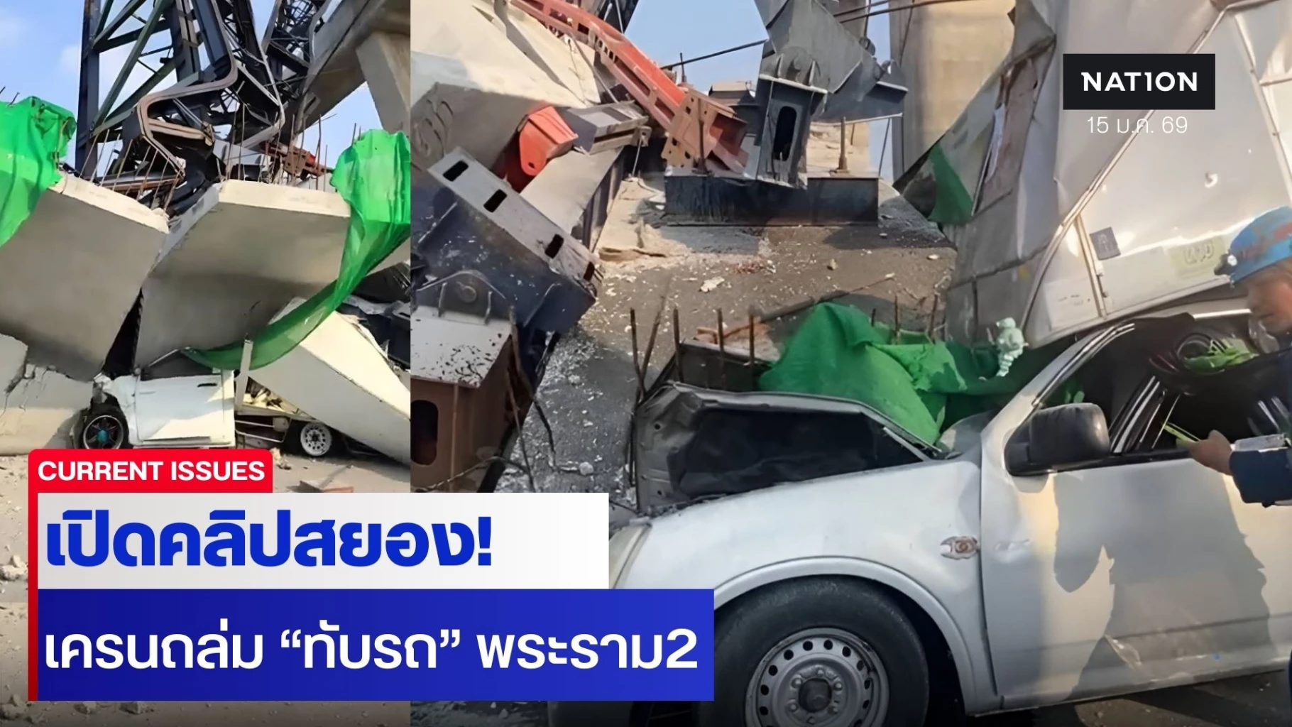 เปิดคลิป! "เครนถล่ม" ทับกระบะ ดับสยอง 2 ราย ถนนพระราม2 ขาออก ก่อนขึ้นสะพานท่าจีน
