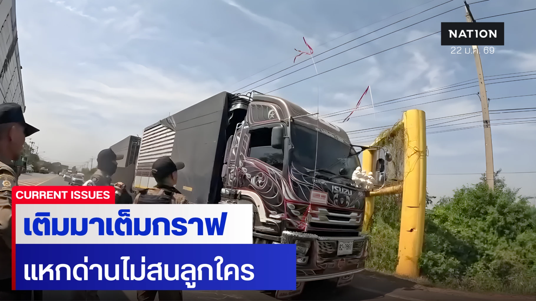 ระทึก! พ่วง 18 ล้อ โชเฟอร์เติมมาเต็มกราฟ สับหลอกซิ่งแหกด่านควันดำ