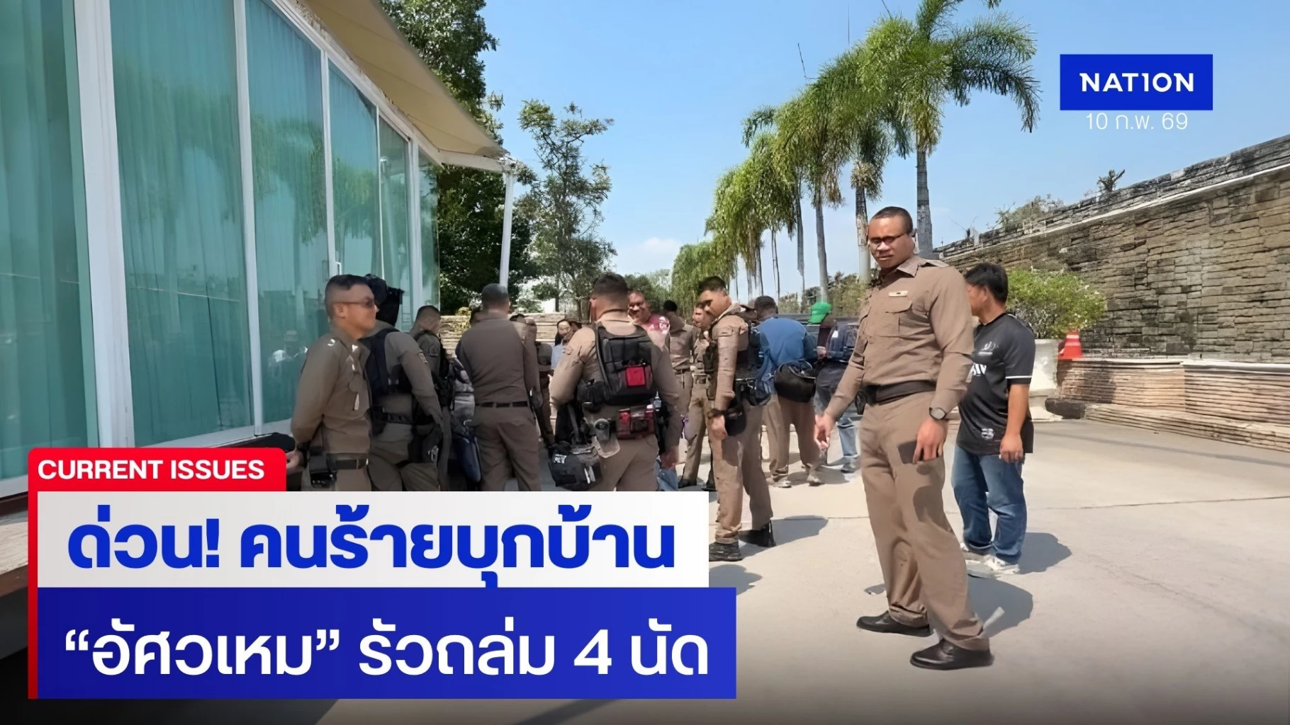 10 กุมภาพันธ์ 2569 เวลา 12.00 น. เจ้าหน้าที่ตำรวจ สภ.เมืองสมุทรปราการ รับแจ้งเหตุ คนร้ายบุกบ้าน นายชนม์สวัสดิ์ อัศวเหม พื้นที่ ถนนท้ายบ้าน อำเภอเมือง จังหวัดสมุทรปราการ จึงไปตรวจสอบ