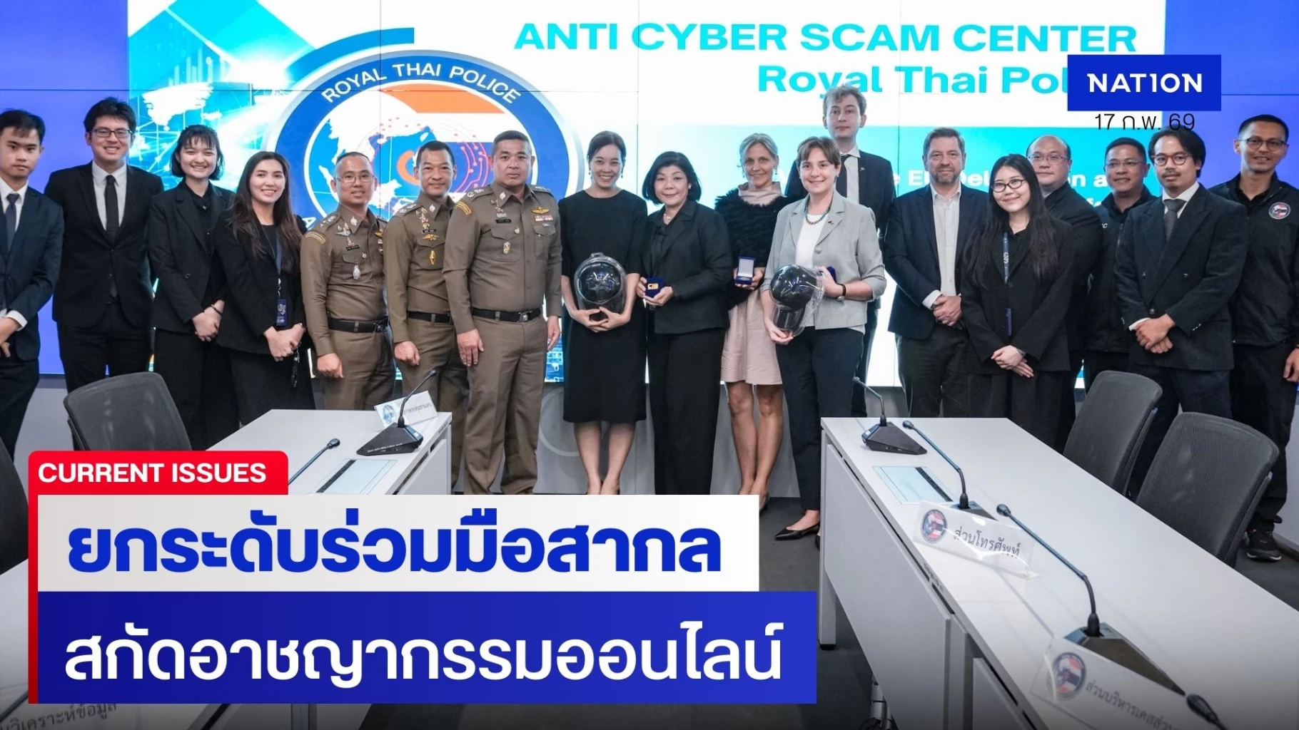 17 กุมภาพันธ์ 2569 ที่ ห้อง RTCC ชั้น 8 อาคารประชาอารักษ์ กองบังคับการปราบปราม ศูนย์ต่อต้านการฉ้อโกงออนไลน์ (ACSC) ภายใต้การอำนวยการ พล.ต.อ.ธนา ชูวงศ์ รอง ผบ.ตร.ในฐานะ ผอ.ศปอส.ตร. และ พล.ต.ท.จิรภพ ภูริเดช ผู้ช่วย ผบ.ตร. ในฐานะ รอง ผอ.ศปอส.ตร. มอบหมายให้ พล.ต.ต.พุฒิพงศ์ มุสิกูล รอง ผบช.ก. เป็นประธานในการประชุมหารือร่วมกับผู้แทนสหภาพยุโรป และกระทรวงการต่างประเทศ(กต.) เพื่อแลกเปลี่ยนข้อมูลและเสริมสร้างความร่วมมือระหว่างประเทศในการรับมืออาชญากรรมทางออนไลน์ที่ทวีความซับซ้อนและขยายวงกว้างในระดับข้ามพรมแดน