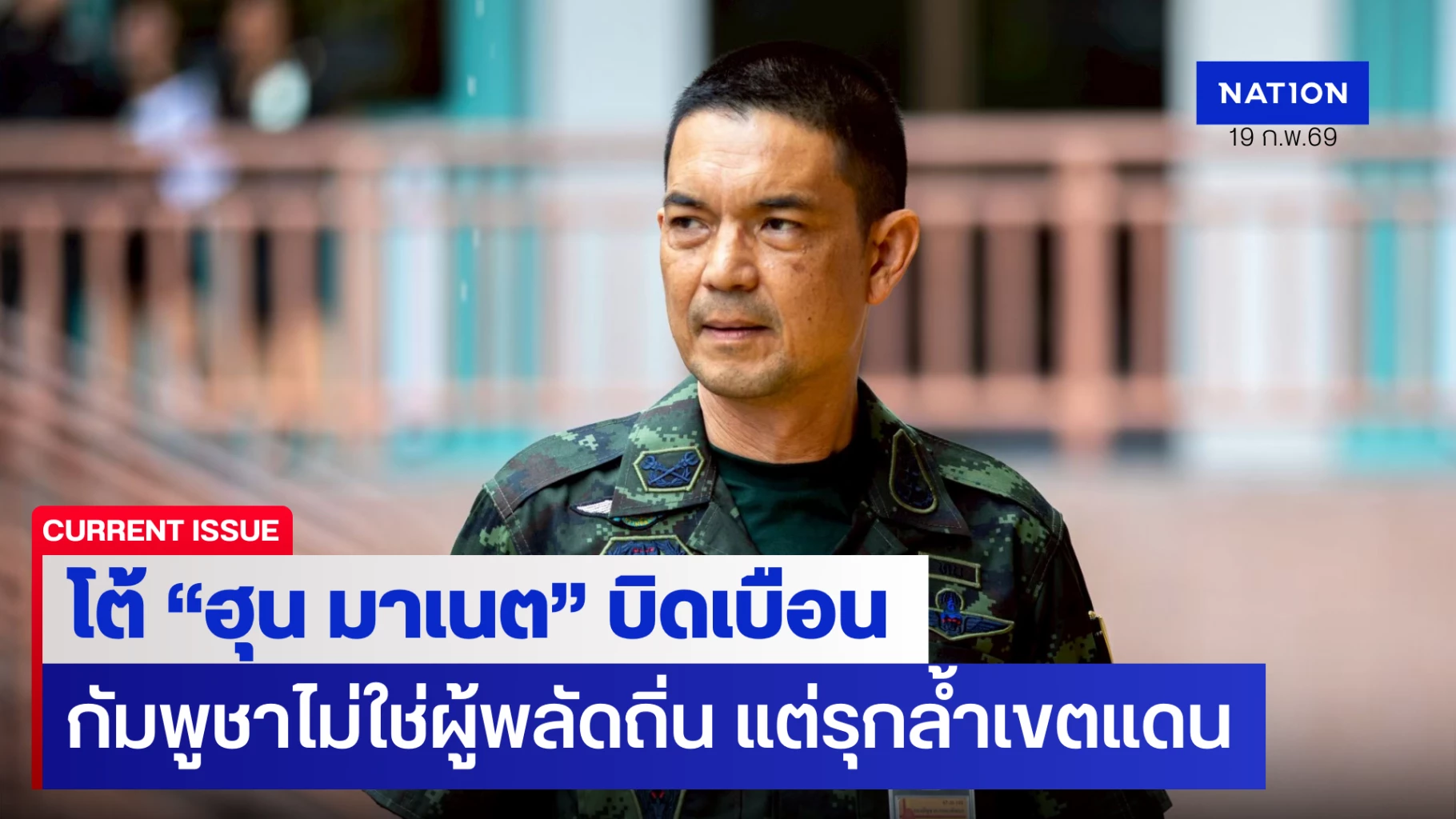 19 กุมภาพันธ์ 2569 พล.ต.วินธัย สุวารี โฆษกกองทัพบก ชี้แจงกรณีที่สำนักข่าว Fresh News ของกัมพูชา เผยแพร่บทสัมภาษณ์ของ นายฮุน มาเนต นายกรัฐมนตรีกัมพูชา ที่ให้สัมภาษณ์กับสำนักข่าวรอยเตอร์ เมื่อวันที่ 17 ก.พ. 69 โดยระบุ กองทัพไทยกำลังยึดครองดินแดนกัมพูชาอยู่ พร้อมทั้งได้ติดตั้งตู้คอนเทนเนอร์และลวดหนาม ส่งผลให้ผู้พลัดถิ่นราว 80,000 คน ไม่สามารถกลับบ้านได้ ว่า กัมพูชาทราบอยู่แล้วว่าพื้นที่ดังกล่าวเป็นพื้นที่ของประเทศไทย ที่ในอดีตไทยเคยได้ให้ความช่วยเหลือผู้ลี้ภัยจากการสู้รบของกัมพูชาเข้ามาพักพิง แต่เมื่อสงครามเสร็จสิ้น ประชาชนและทหารกัมพูชากลับไม่เดินทางกลับประเทศของตน ซ้ำยังมีการขยายชุมชนรุกล้ำเขตอธิปไตยของไทยอย่างต่อเนื่อง ซึ่งฝ่ายไทยก็ได้มีการเรียกร้องหรือประท้วงผ่านกลไกคณะทำงานต่างๆ มาตลอด แต่กัมพูชากลับเพิกเฉย และไม่ยอมแก้ไขปัญหาในการนำประชาชนกลับไป ยังพื้นที่ฝั่งประเทศกัมพูชา
