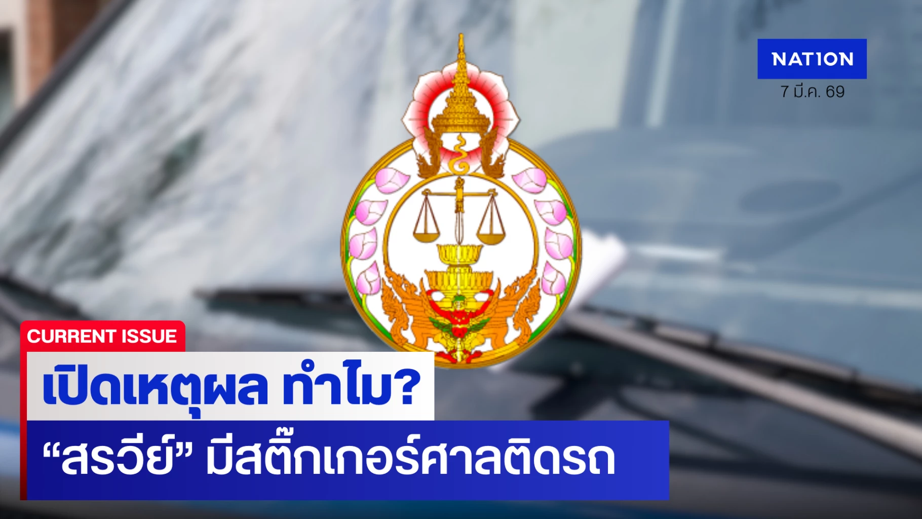 7 มีนาคม 2569 จากที่มีข่าวเผยแพร่ผ่านสื่อต่างๆ เกี่ยวกับสถานะ “นายสรวีย์” ผู้ต้องหาคดีอุ้มฆ่า นายรุทธ์ มณีประเสริฐ หรือ “ท็อป” ผู้จัดการบริษัทนำเข้า และจำหน่ายเครื่องมือทางการแพทย์ โดยเฉพาะประเด็นสติ๊กเกอร์จอดรถที่มีสัญลักษณ์ศาลนั้น