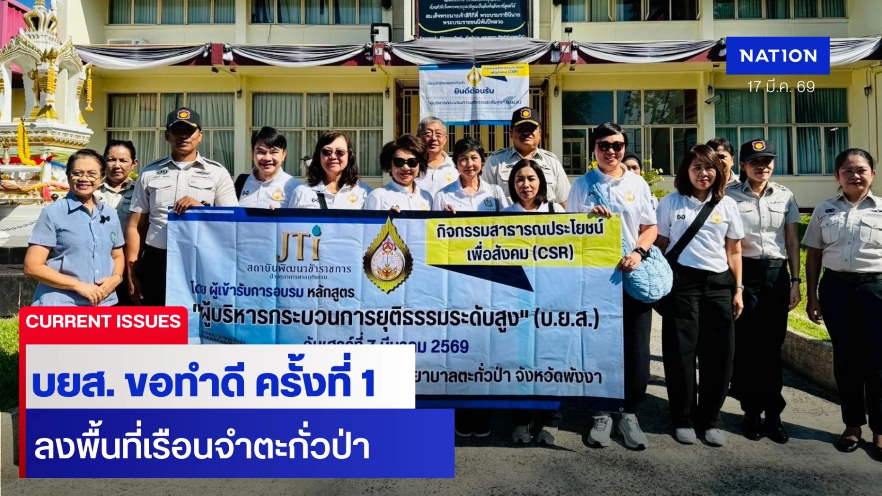 เมื่อวันที่ 17 มี.ค. คณะผู้เข้าอบรมหลักสูตร “ผู้บริหารกระบวนการยุติธรรมระดับสูง” หรือ บ.ย.ส. รุ่นที่ 26 – 30 นำโดย นางพนิดา ภาณุพัฒนพงศ์, รองศาสตราจารย์นายแพทย์นริศ กิจณรงค์ และนางลดาวัลย์ ดำเนินชาญวนิชย์ ร่วมกันจัดกิจกรรมสาธารณประโยชน์ภายใต้โครงการ “บ.ย.ส. ขอทำดี ครั้งที่ 1” เพื่อส่งต่อความห่วงใยและยกระดับคุณภาพชีวิตให้แก่ผู้ต้องขังและประชาชนในพื้นที่อำเภอตะกั่วป่า จังหวัดพังงา