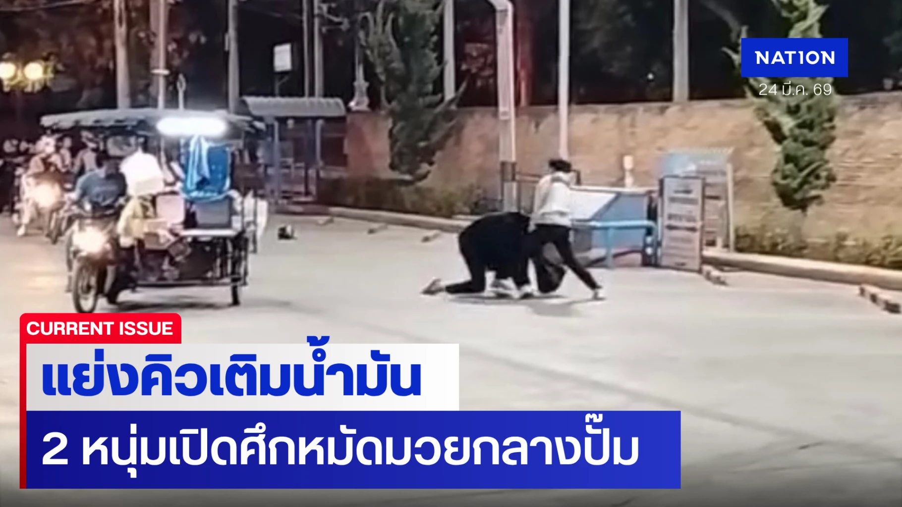 คลิปว่อนโซเชียล! 2 หนุ่มเปิดศึกหมัดมวยกลางปั๊มน้ำมันช่วงดึก หลังน้ำมันจ่อขึ้นราคากระฉูด 2 บาทเช้านี้ เผยชนวนเหตุ "แซงคิว"