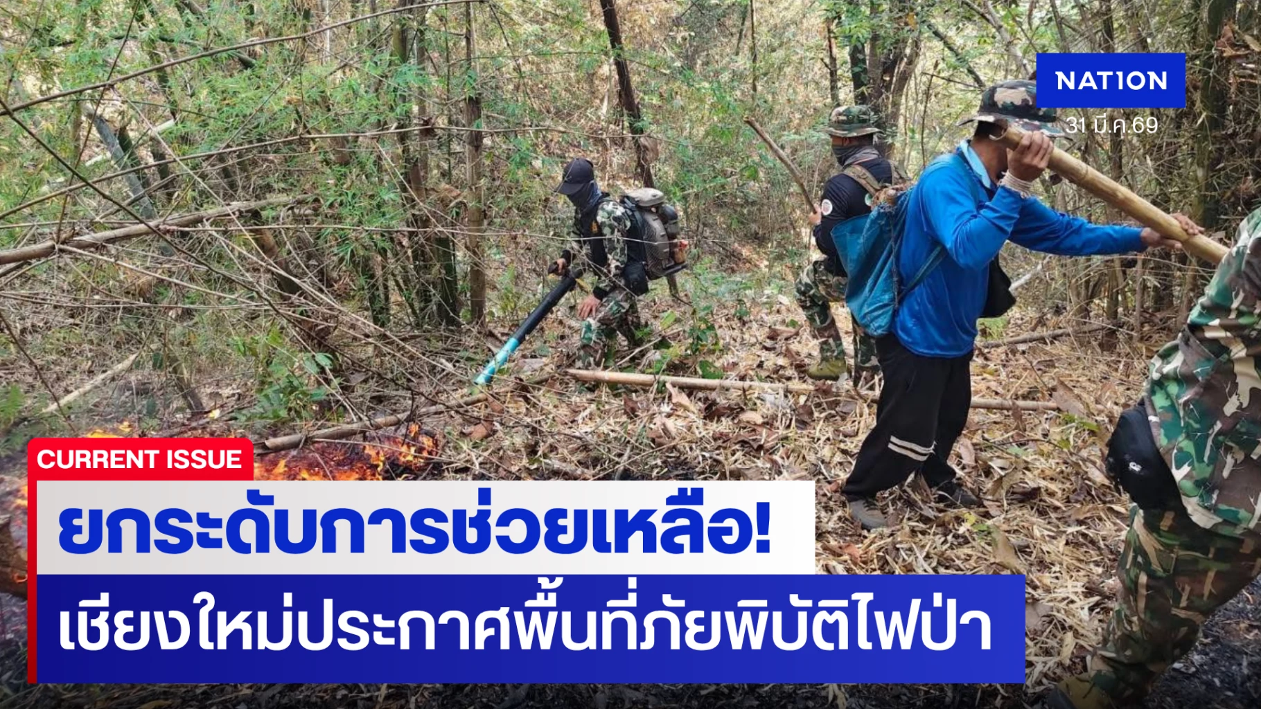31 มีนาคม 2569 ผู้สื่อข่าวรายงานสถานการณ์ไฟป่าและหมอกควันใน จ.เชียงใหม่ ยังคงทวีความรุนแรงต่อเนื่อง ล่าสุดทางจังหวัดได้ประกาศพื้นที่ประสบสาธารณภัย (ไฟป่า) และเขตให้ความช่วยเหลือผู้ประสบภัยพิบัติกรณีฉุกเฉิน ครอบคลุมแล้ว 2 อำเภอ ได้แก่ อำเภอสะเมิง และ อำเภอฮอด เพื่อเร่งบรรเทาความเดือดร้อนของประชาชนในพื้นที่