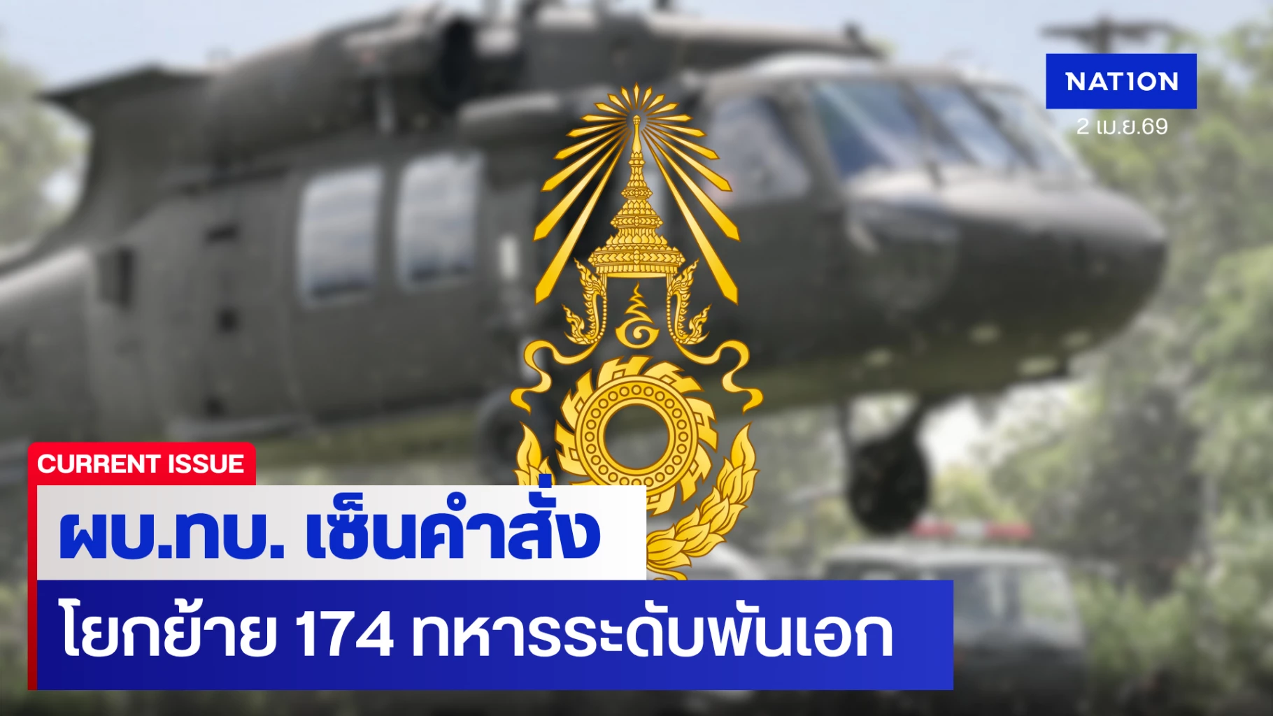 2 เมษายน 2569 พล.อ.พนา แคล้วปลอดทุกข์ ผู้บัญชาการทหารบก (ผบ.ทบ.) ลงนามคำสั่งกองทัพบก ที่ 109/2569 และ 112/2569 ลงวันที่ 1 เมษายน 2569 เรื่อง ให้นายทหารรับราชการและปรับระดับเงินเดือน โดยคำสั่งแรกจำนวน 109 นาย และ คำสั่งที่ 2 อีก 65 นาย รวมเป็น 174 นาย โดยมีตำแหน่งที่สำคัญดังต่อไปนี้