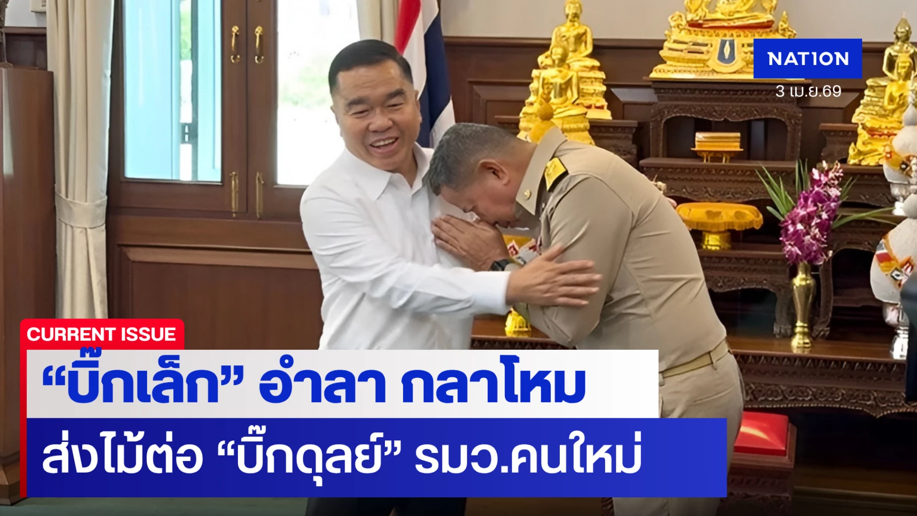 หลังจากพูดจบ พลเอก ณัฐพล ได้สวมกอด พลโท อดุลย์ ก่อนที่ พลเอก ณัฐพล พูดปิดท้ายด้วยประโยคว่า “พลโท อดุลย์ มาอยู่ในระดับผู้บริหารแล้ว จะรู้ว่าประเทศไทยมีอะไรที่ต้องแก้ปัญหาอีกเยอะ”