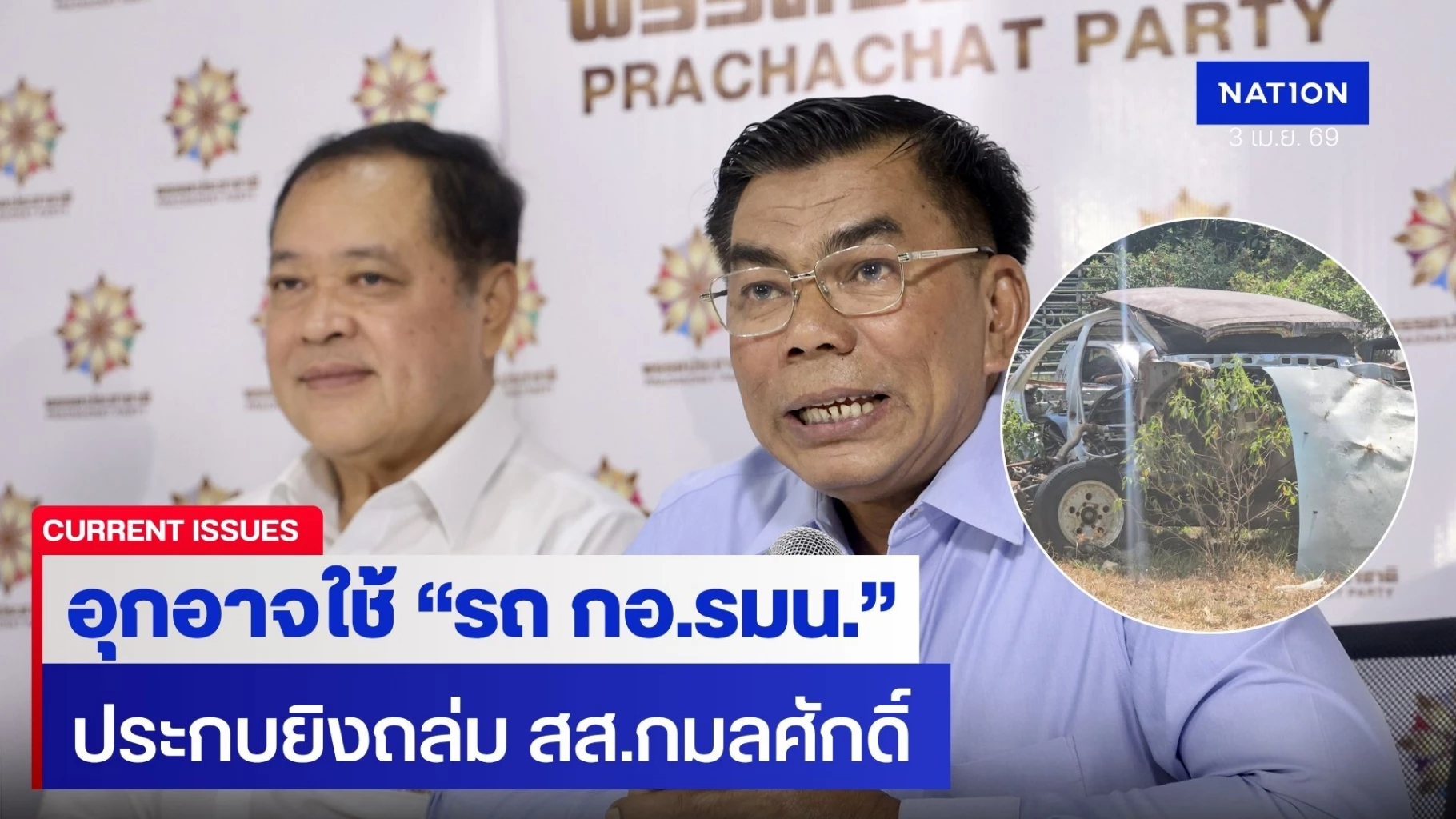 3 เมษายน 2569 เวลา 10.30 น. ที่ ทำการใหญ่พรรคประชาชาติ ดอนเมือง พ.ต.อ.ทวี สอดส่อง หัวหน้าพรรคประชาชาติ และ สส.บัญชีรายชื่อ พรรคประชาชาติ แถลงข่าว ความคืบหน้ากรณียิงถล่ม นายกมลศักดิ์ ลีวาเมาะ หรือ “ทนายแวยูแฮ” สส.นราธิวาส เขต 5 ถูกลอบยิงบริเวณหน้าบ้านพัก ที่อำเภอบาเจาะ จังหวัดนราธิวาส เมื่อเวลา 01.00 น. วันที่ 20 มีนาคม 2569