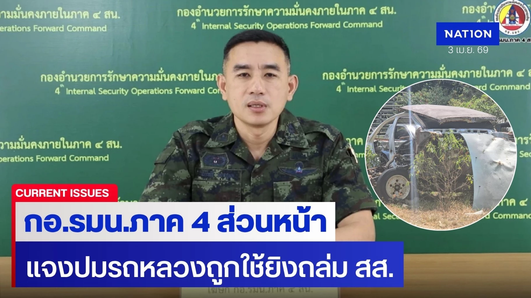 กอ.รมน.ภาค 4 ส่วนหน้า แจงปม รถ กอ.รมน.ถูกใช้ยิงถล่ม “สส.กมลศักดิ์”