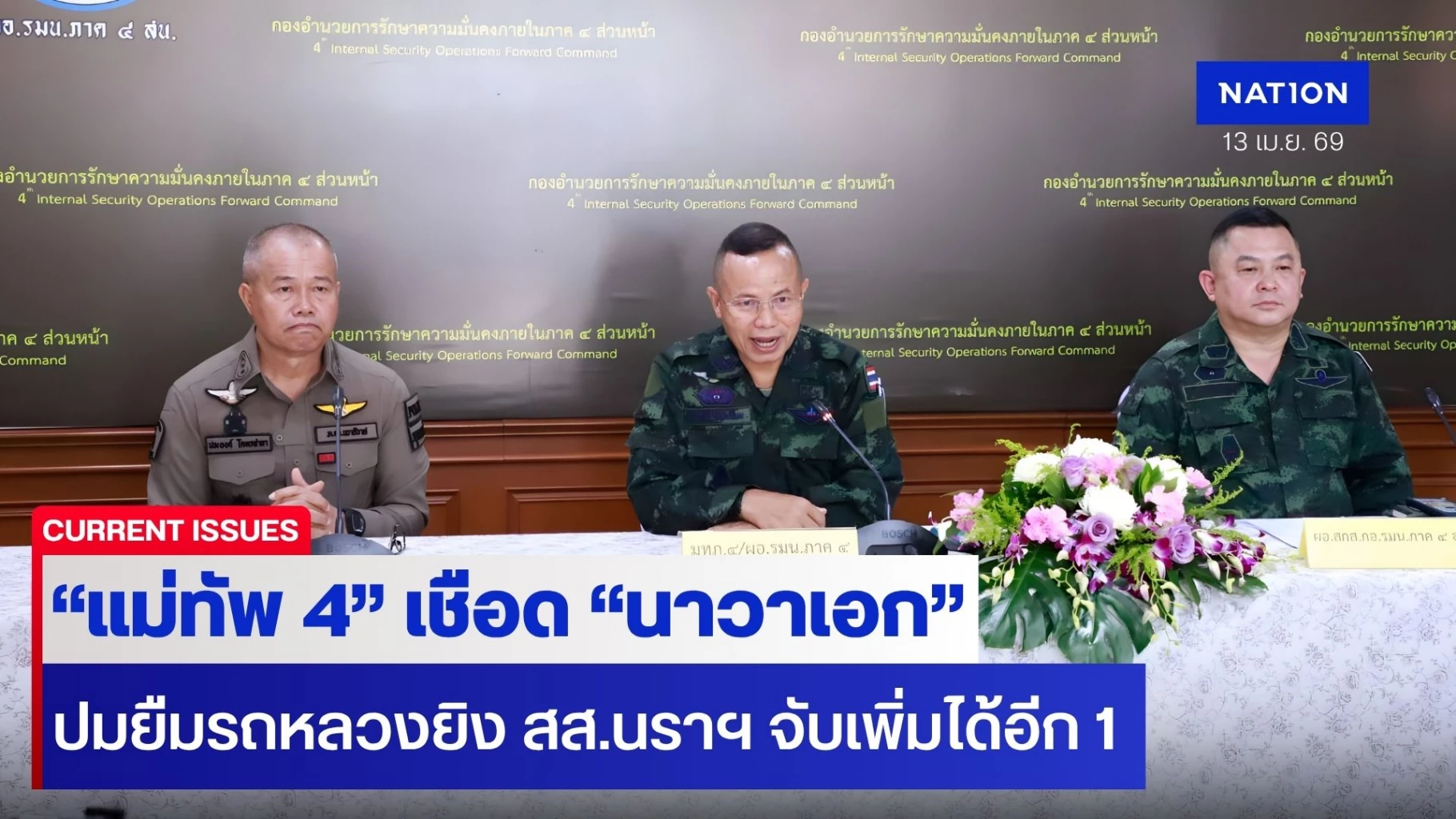 13 เมษายน 2569 กองอำนวยการรักษาความมั่นคงภายในราชอาณาจักร (กอ.รมน.) ชี้แจงเหตุลอบยิง นายกมลศักดิ์ ลีวาเมาะ สส.นราธิวาส พรรคประชาชาติ เมื่อ 20 มีนาคม 2569 และพบว่ามีการนำรถยนต์ของทางราชการไปใช้ในการก่อเหตุ