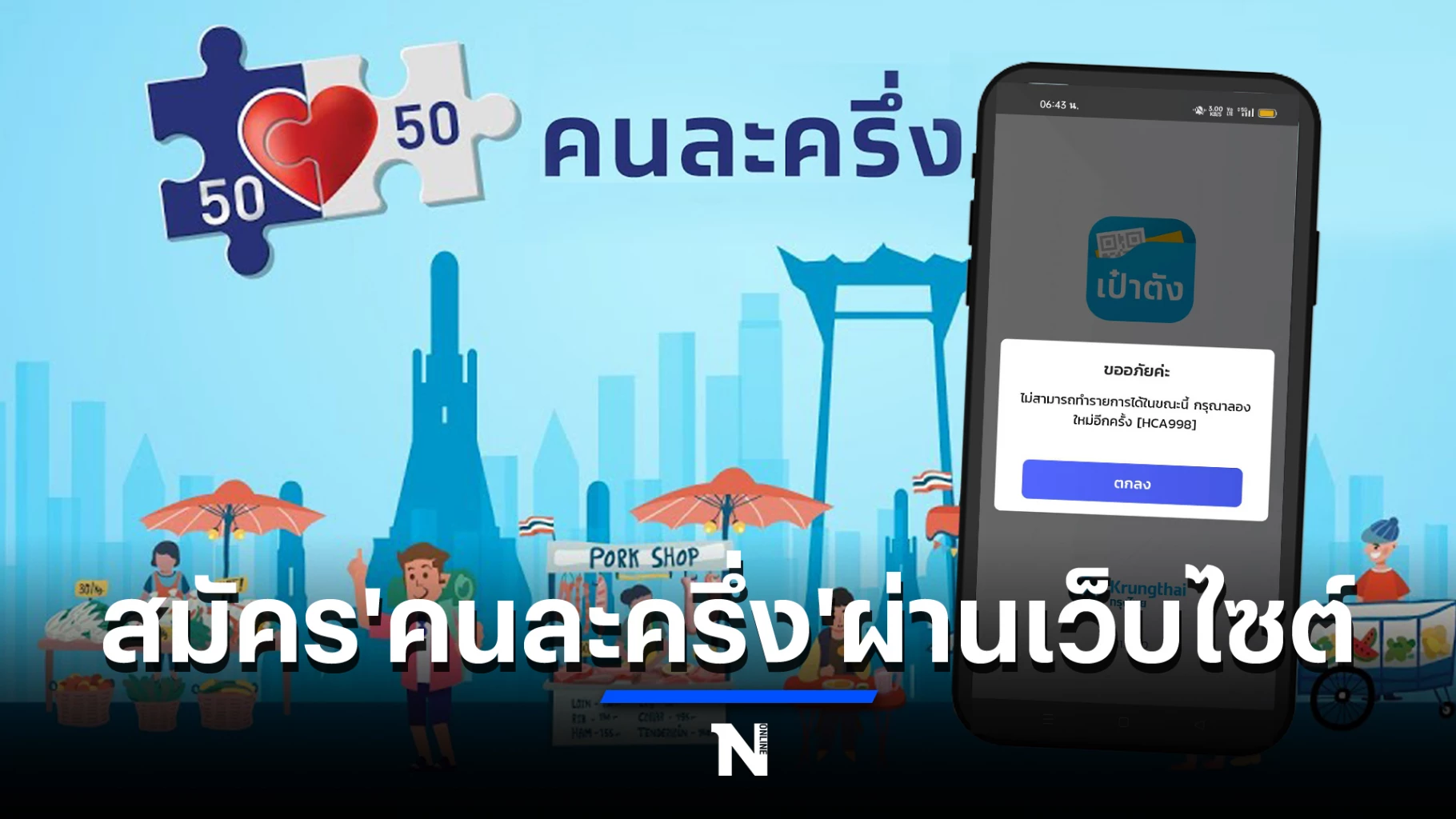 - ลงทะเบียนผ่านเว็บไซต์ www.คนละครึ่ง.com