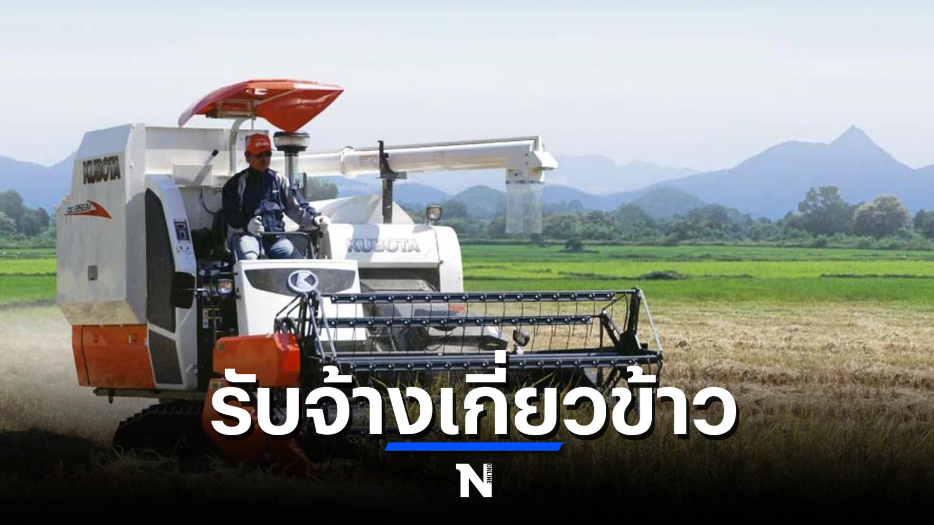 รับจ้างเกี่ยวข้าวรายได้ดีชาวนาต่อคิวใช้บริการ