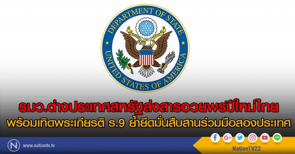 เพื่อสืบสานวิสัยทัศน์ของพระองค์ สหรัฐ จะยังคงยึดมั่นต่อพันธกรณีและความร่วมมือกับไทยในหลายประเด็นสำคัญ ซึ่งจะเสริมสร้างความมั่นคงของประเทศเราทั้งสองและของภูมิภาค สหรัฐมุ่งหวังที่จะสานต่อความร่วมมืออันทรงค่าของเราต่อไปในปีใหม่ และขออวยพรให้ชาวไทยทุกคนประสบความสุขความเจริญและมีสุขภาพพลานามัยสมบูรณ์ในปีใหม่นี้