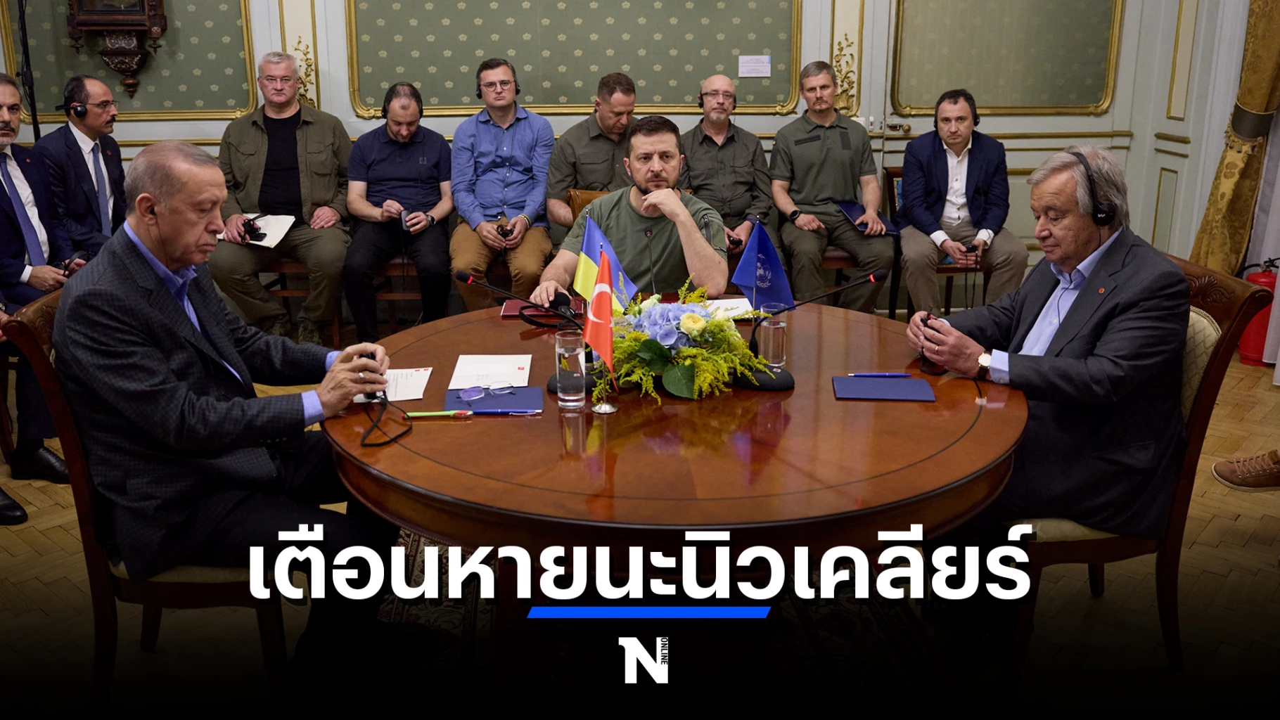 อันตูนิโอ กูแตร์เรส เลขาธิการสหประชาชาติ ย้ำเตือนถึงอันตรายจากการสู้รบใกล้โรงไฟฟ้านิวเคลียร์ ซาปอริชเซีย ในภาคใต้ของยูเครน ระหว่างการพบหารือกับประธานาธิบดีโวโลดิมีร์ เซเลนสกี ของยูเครน และประธานาธิบดีเรเจ๊ป ไตยิบ แอร์ดวน ของตุรกี ที่เมืองลวีฟของยูเครนเมื่อวันพฤหัสบดี