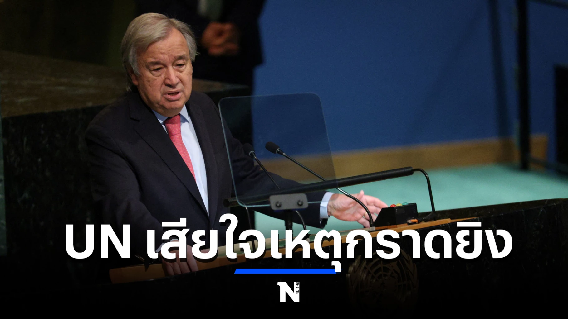 สตีเฟน ดูจาร์ริก โฆษกของ อันโตนิโอ กูเตอร์เรส เลขาธิการสหประชาชาติ (UN) เผยว่า กูเตอร์เรสตกใจและเศร้าใจกรณีเกิดเหตุกราดยิงที่ศูนย์พัฒนาเด็กเล็กตำบลอุทัยสวรรค์ จังหวัดหนองบัวลำภู เมื่อวันพฤหัสบดี (6 ต.ค.) ซึ่งทำให้มีผู้เสียชีวิต 37 ราย และเหยื่อส่วนใหญ่เป็นเด็ก