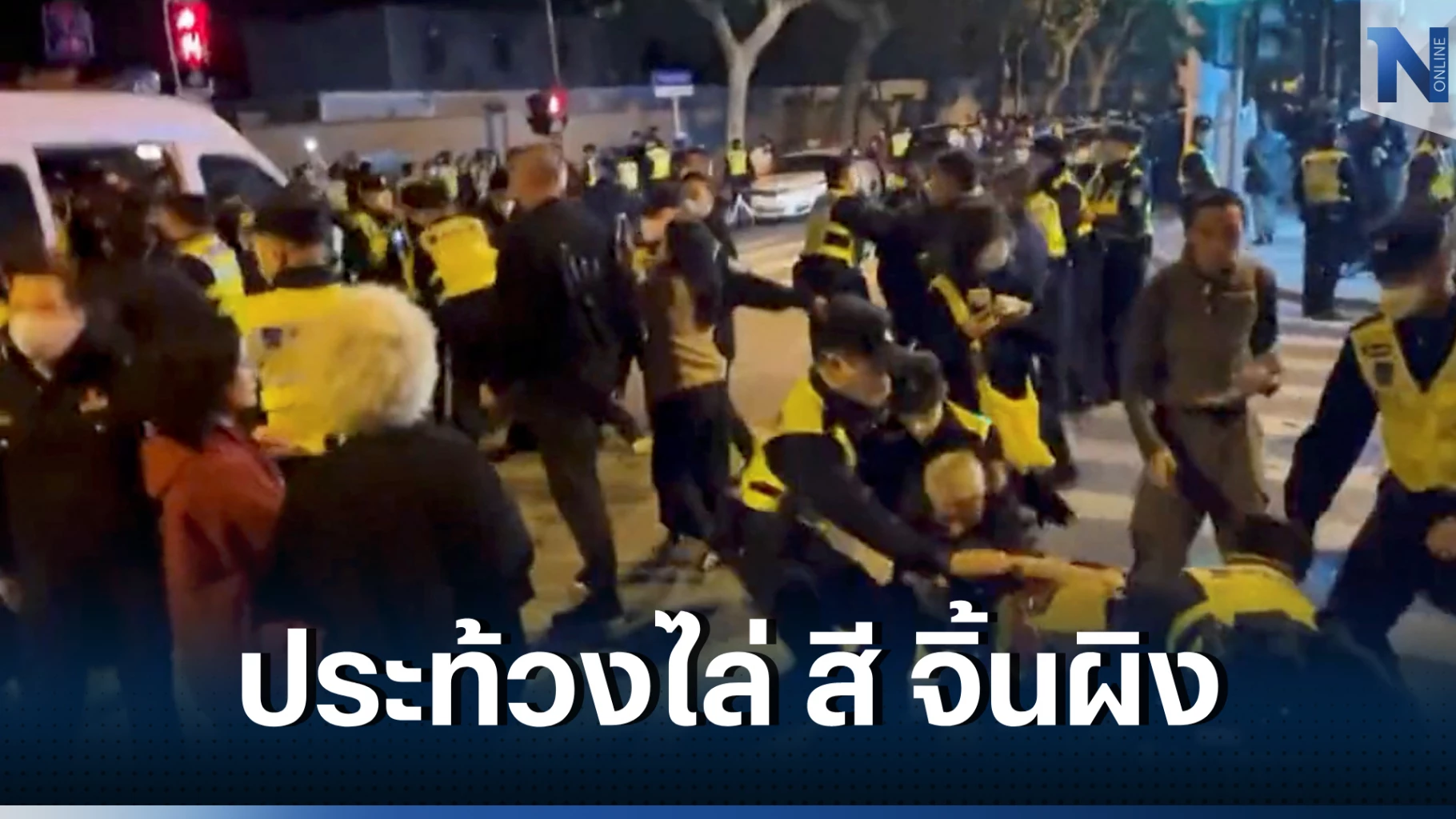 นอกจากนี้ในคลิปมีเสียงผู้ปะท้วงตะโกนว่า “คอมมิวนิสต์ออกไป” , “สี จิ้นผิง ลาออก” และ “ยุติล็อกดาวน์ในซินเจียง” ซึ่งเป็นการประท้วงต่อต้านผู้นำอย่างที่ไม่ค่อยปรากฏนัก และตำรวจใช้กำลังเข้าจับกุมผู้ชุมนุมบางคนขึ้นรถสายตรวจไป ผู้ประท้วงคนหนึ่ง เล่าว่า เพื่อนถูกตำรวจทุบตี และฉีดสเปรย์พริกไทยใส่ และมีตำรวจราว 100 นายตั้งแถวเพื่อพยายามควบคุมฝูงชน