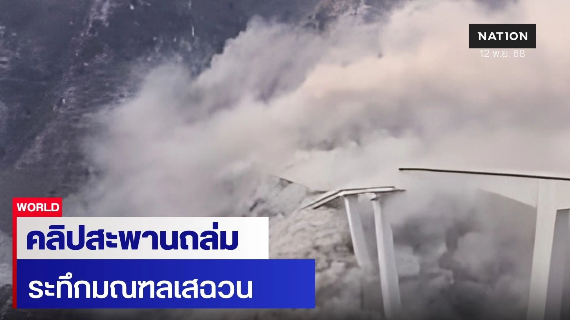 12 พฤศจิกายน 2568 เกิดเหตุระทึก สะพานหงฉี (Hongqi Bridge) ในเมืองชวงเจียงโข่ว มณฑลเสฉวน ของจีน ที่มีความยาว 758 เมตร พังถล่มลงมาบางส่วน ในวันนี้ หลังจากเปิดใช้งานได้เพียงไม่กี่เดือน โดยมีผู้บันทึกคลิปนาทีระทึกสะพานถล่มเอาไว้ได้