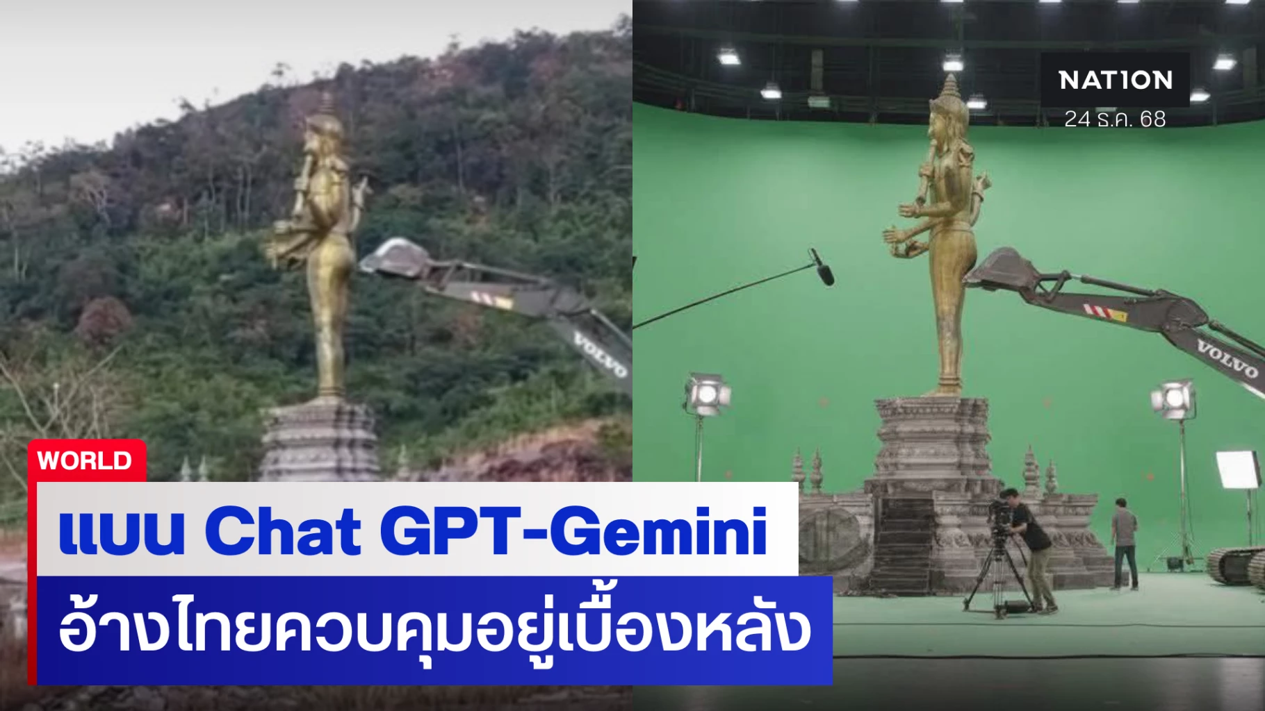 เรื่องนี้ มีต้นตอมาจากการที่สื่อกัมพูชานําภาพที่อ้างว่า การบุกยึดครอบครองพื้นที่ต่างๆ ของไทย เป็นการตัดต่อโดยใช้ "จอเขียว" (Green Screen) ในการสร้างข่าวปลอม (Fake News) เกี่ยวกับสถานการณ์ชายแดนไทย-กัมพูชา โดยใช้ AI ทํา ส่งผลให้ชาวกัมพูชาเกิดความสับสน และมีหลายคนนำเรื่องนี้ไปสอบถามกับ ChatGPT และ Gemini ซึ่งคำตอบที่ออกมาชัดเจน เช่น ภาพกัมพูชาปลดธงชาติไทย ความจริงคือ ภาพตัดต่อที่นำธงชาติกัมพูชามาสลับกับธงไทย และเกิดขึ้นในพื้นที่ของกัมพูชาเอง หรือภาพล่าสุด ไทยโค่นรูปปั้นเทพเจ้าฮินดู ที่กัมพูชาสร้างไว้ที่ชายแดน ซึ่งเป็นความจริง แต่กัมพูชาอ้างว่า เป็น AI และเป็นการทำโดยใช้จอเขียวในสตูดิโอแห่งหนึ่ง