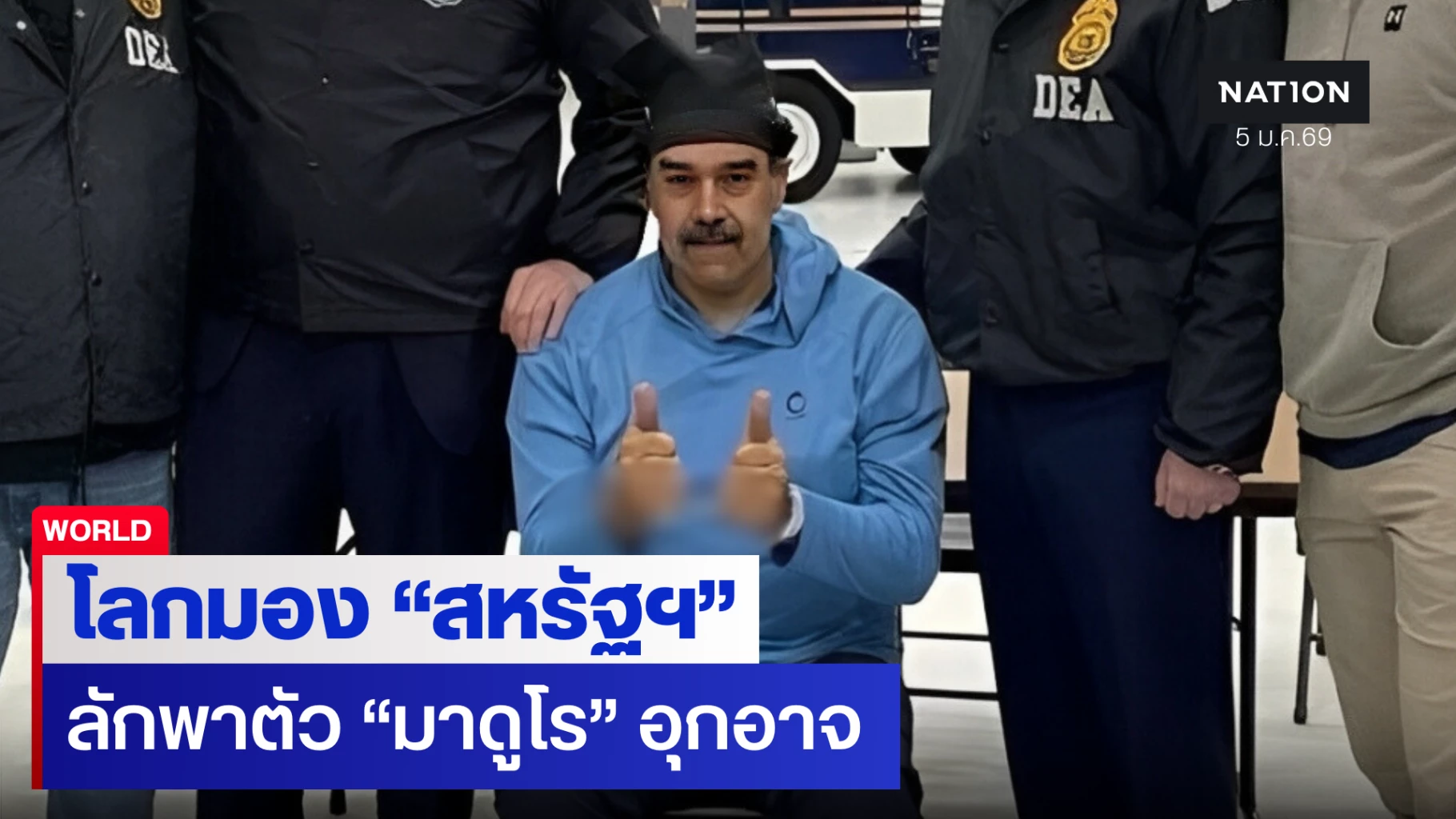 เวลา 04:29 น. ตามเวลาท้องถิ่น หรือเพียง 2 ชั่วโมงครึ่งต่อมา มาดูโรถูกนำตัวขึ้นเรือบรรทุกเครื่องบิน "ยูเอสเอส อิโวจิมา" (USS Iwo Jima) ในทะเลแคริบเบียน ก่อนมุ่งหน้าไปยังนครนิวยอร์กของสหรัฐฯ โดยหลังออกจากเรือบรรทุกเครื่องบิน มาดูโรถูกคุ้มกันแน่นหนาไปขึ้นเครื่องบิน ก่อนลงจอดที่ฐานทัพอากาศแห่งชาติสจ๊วต (Stewart Air National Guard Base) ในนิวยอร์ก เวลาประมาณ 16:30 น. ตามเวลาท้องถิ่น